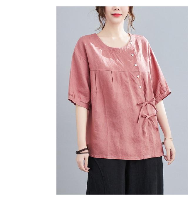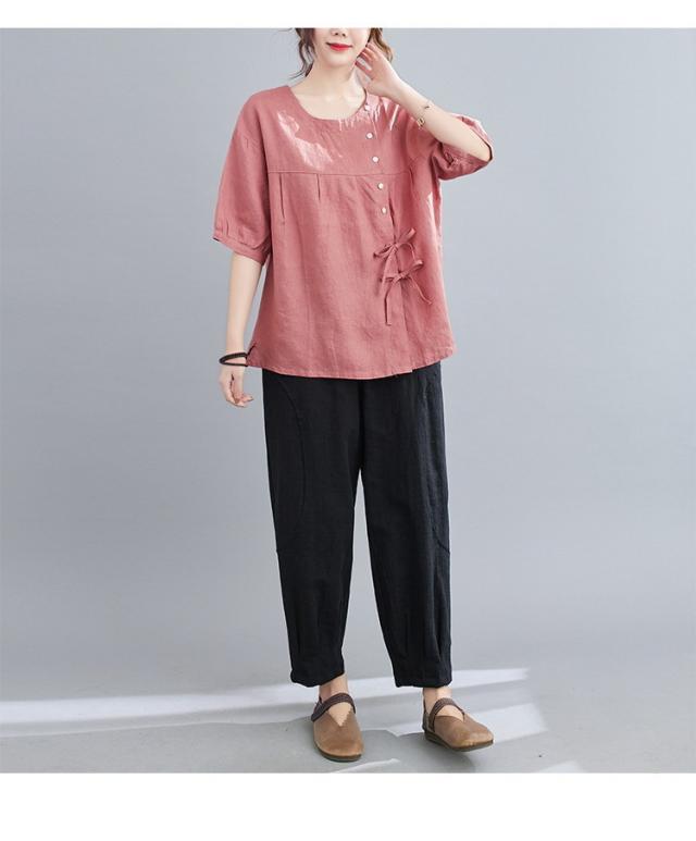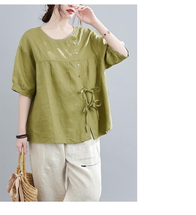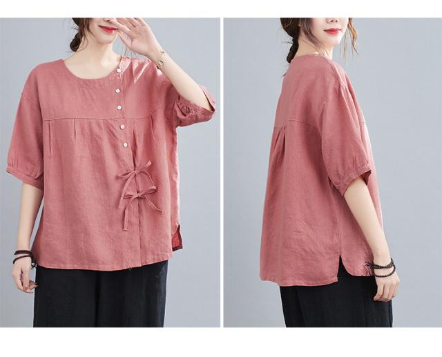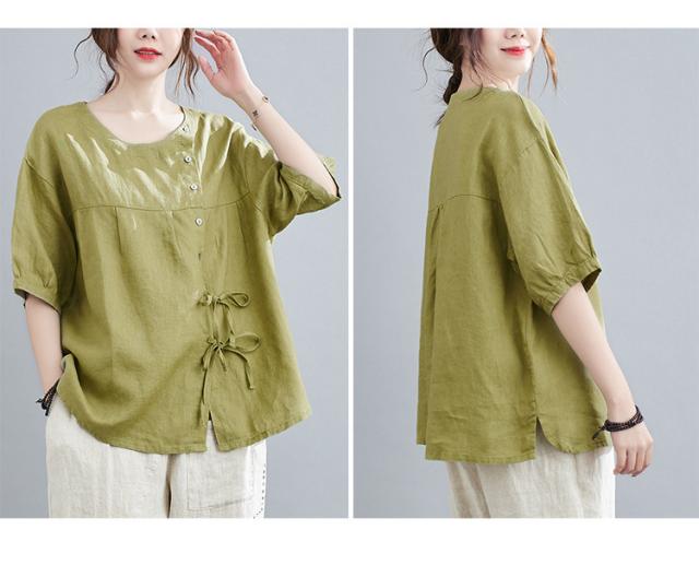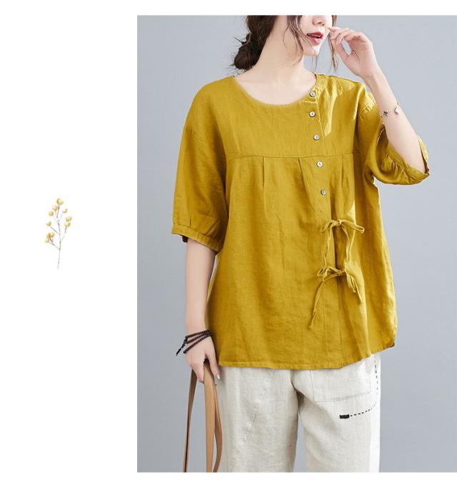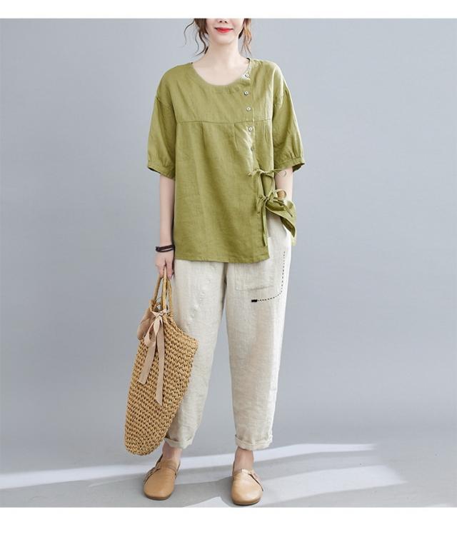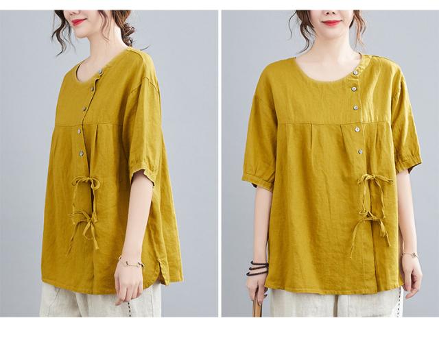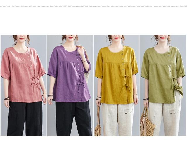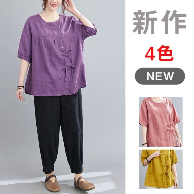 ブラウス レディース キレイめ 40代 カットソー 夏 ブラウス トップス リボン付き 五分袖 カジュアル ゆったり 大人 Tシャツ 4色