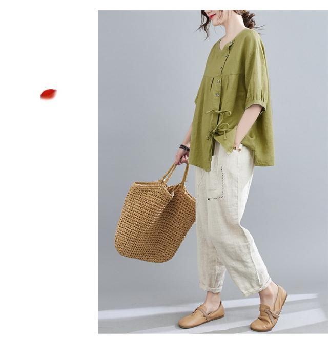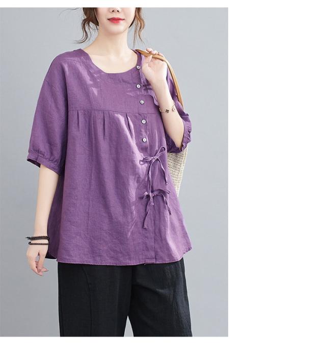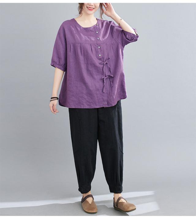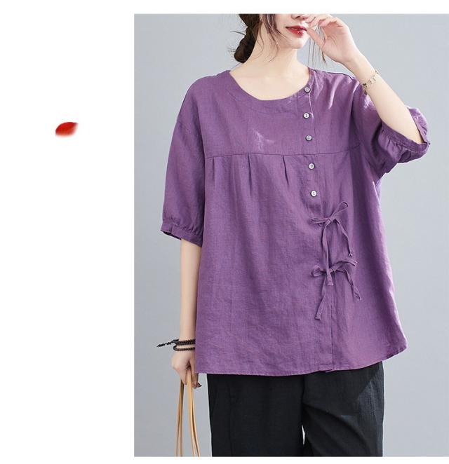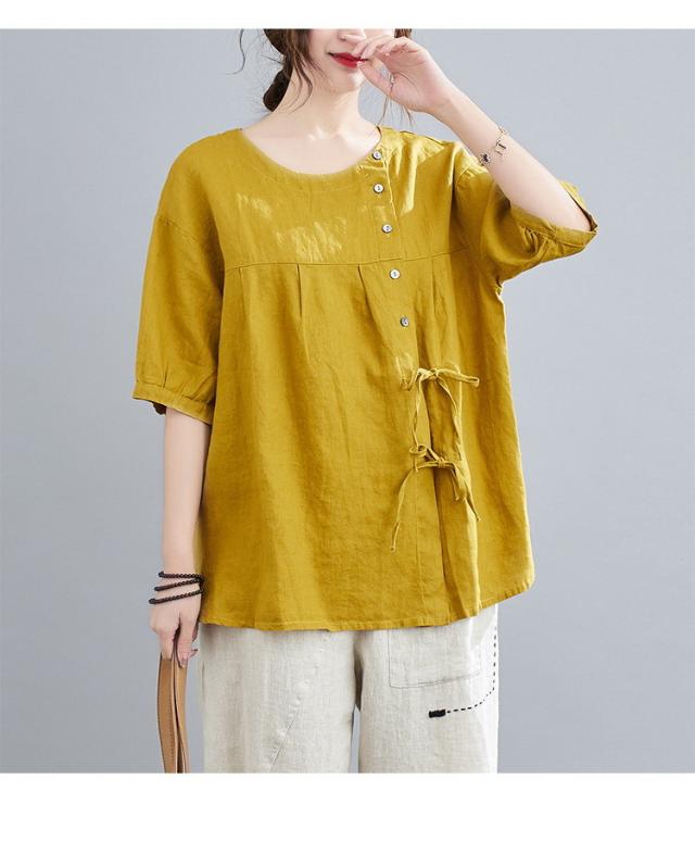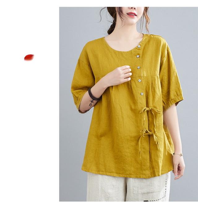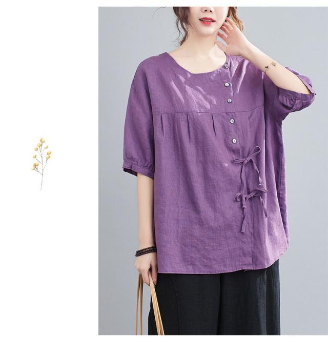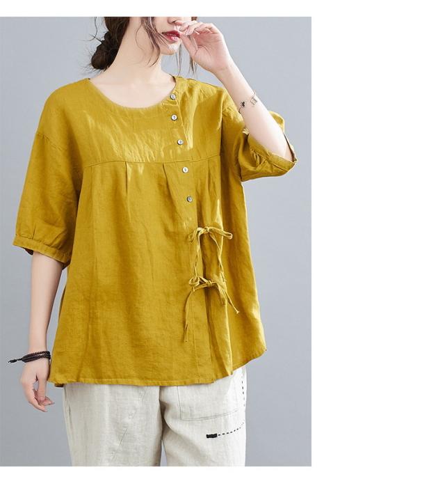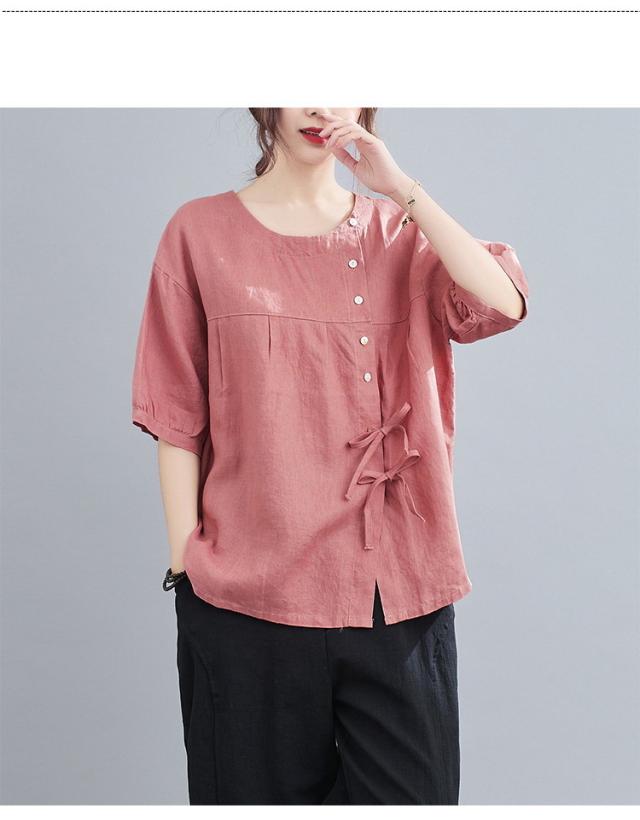 ブラウス レディース キレイめ 40代 カットソー 夏 ブラウス トップス リボン付き 五分袖 カジュアル ゆったり 大人 Tシャツ 4色