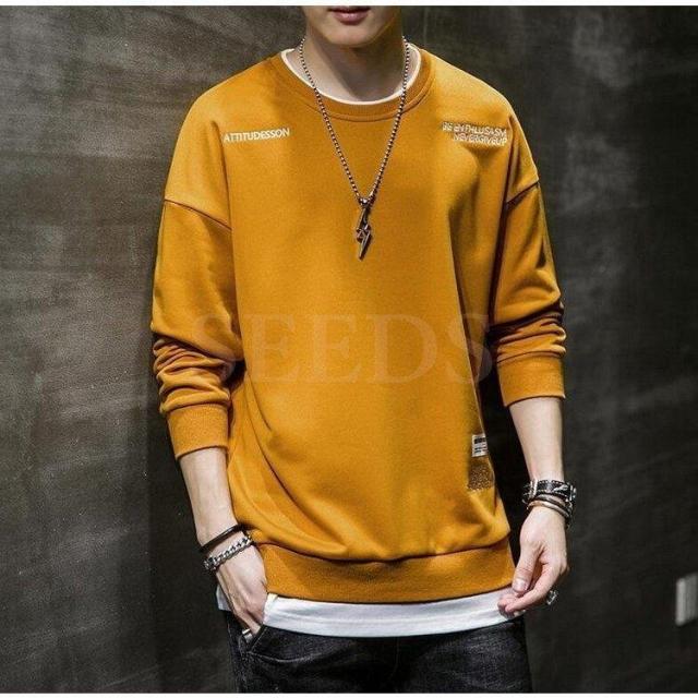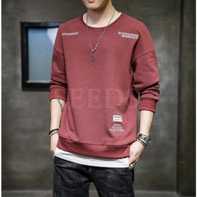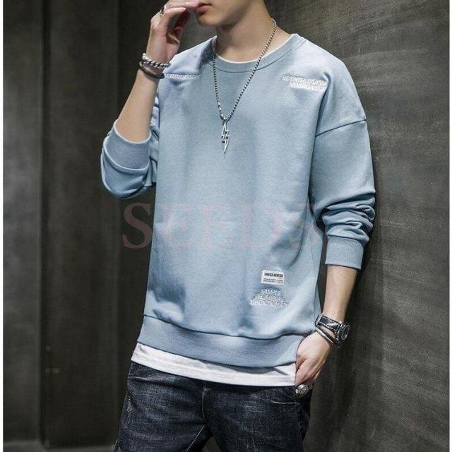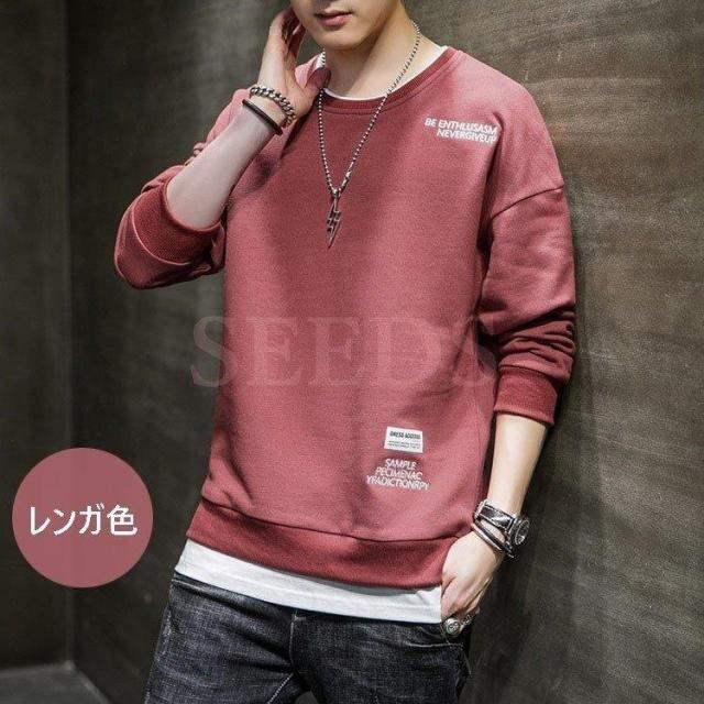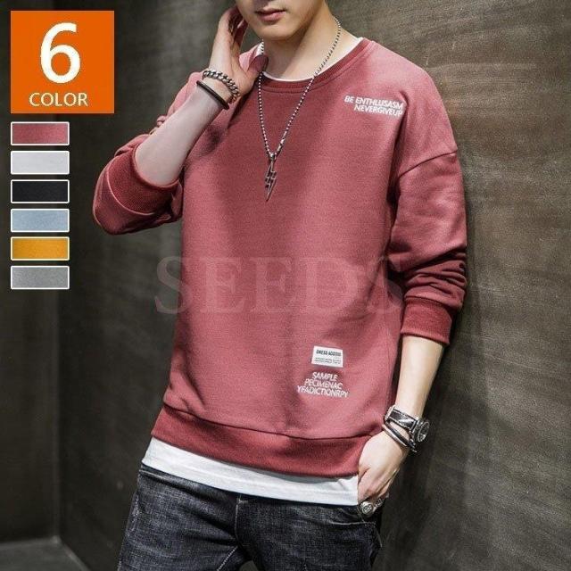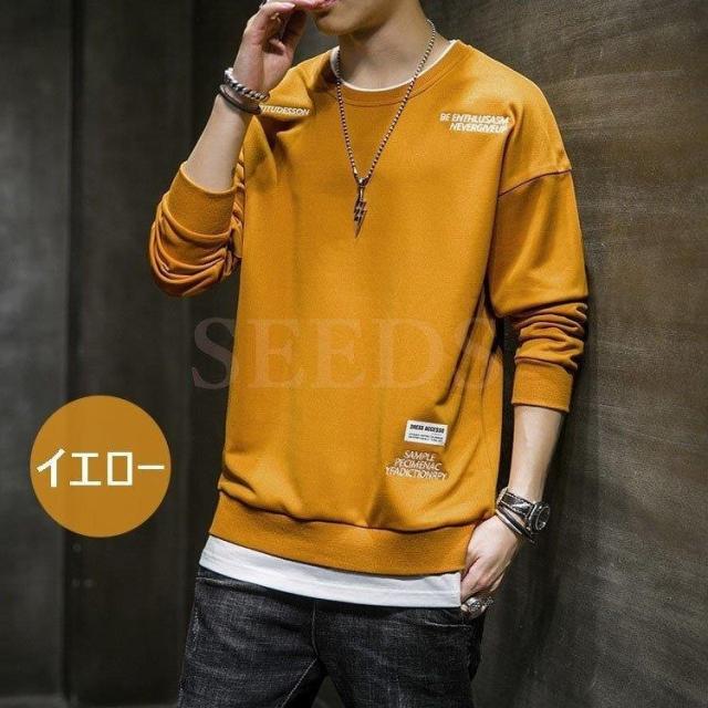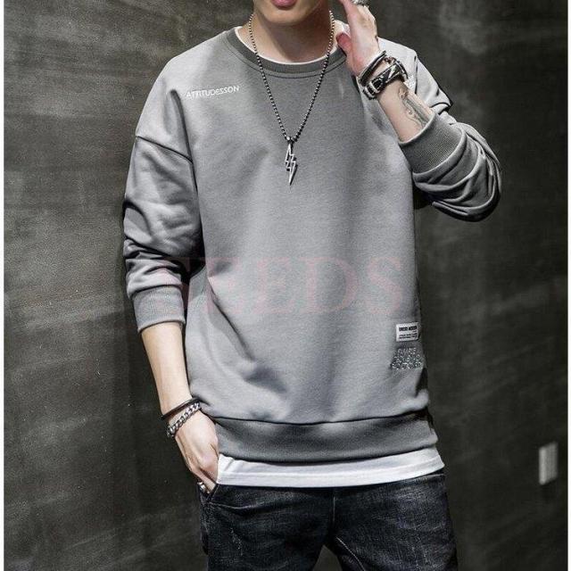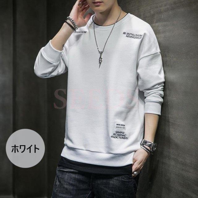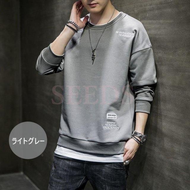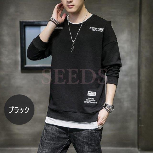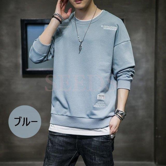 スウェットトレーナー メンズ 春服 春物 長袖Tシャツ クルーネック 英文字 刺繍トレーナー プルオーバートレーナー 韓国ファッション カジュアルトップス