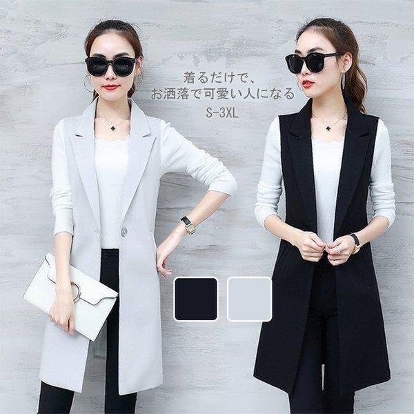 ベスト レディース ノースリーブ ロングジレ トレンチベスト 無地 ジレンチ トップス ロングベスト レディース ジレ 秋 冬 大きいサイズ 20代 30代 40代