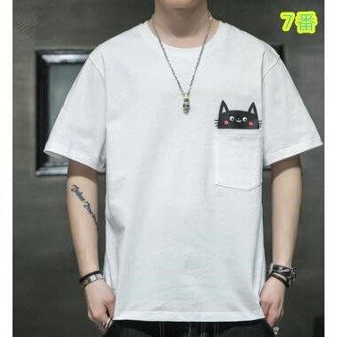 Tシャツ メンズ 半袖 猫柄 半袖Tシャツ tシャツ 夏服 クルーネック カットソー 配色 トップス 薄手 おしゃれ カジュアル 夏新作