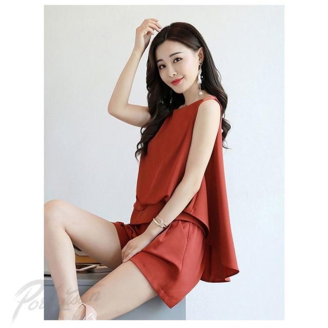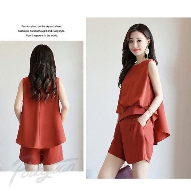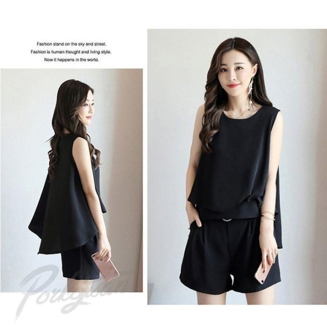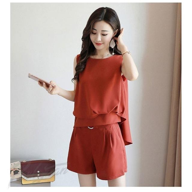 セットアップ レディース 上下セット ノースリーブブラウス ショートパンツ 2点セット シフォンブラウス ルームウェア 大きいサイズ 2018春夏新作