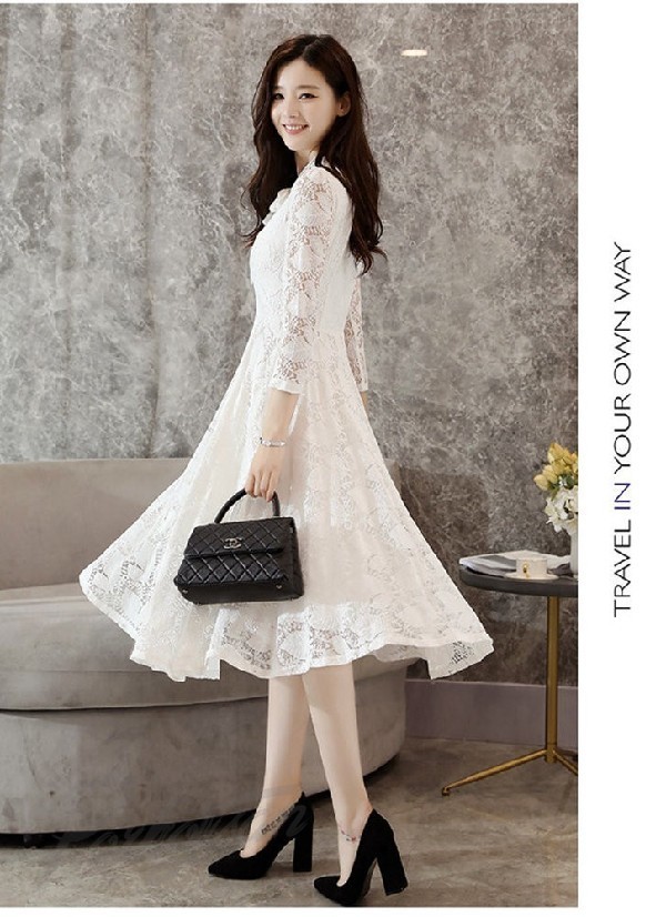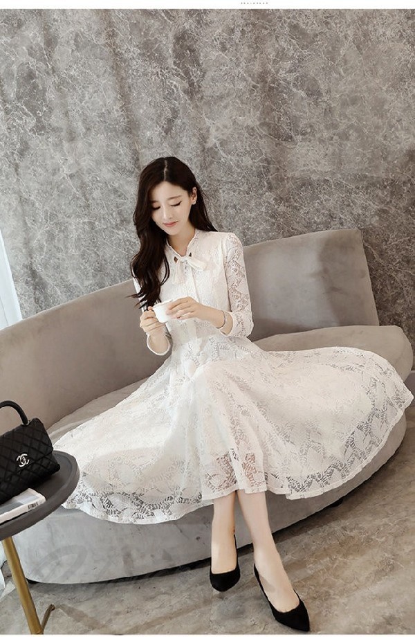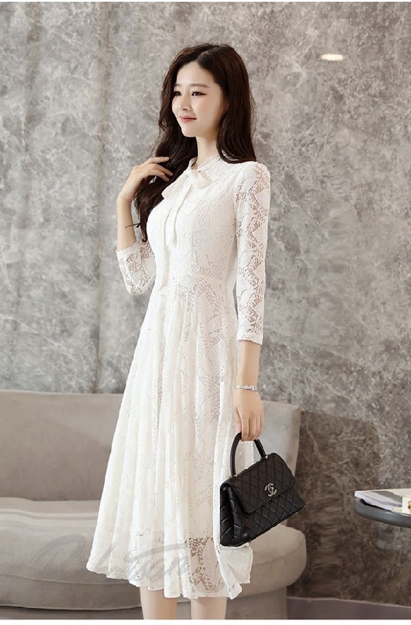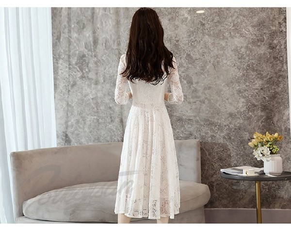 ワンピース レディース 春 きれいめ チュニック ワンピース 長袖 レースワンピース 膝丈 上品 エレガント ワンピース レディース 最新刊 30代 40代 50代