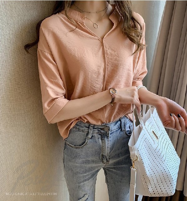 ブラウス レディース 春夏 vネックブラウス 五分袖 ブラウス シャツ オシャレフォーマル ブラウス トップス ゆったり 通勤 OL オシャレ 大人 上品