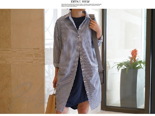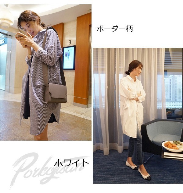 ブラウス レディース 春夏 ブラウス 白シャツ 襟付き 長袖 ブラウス ロング丈シャツ ボーダー柄 韓国風 オシャレ シャツ トップス 通勤 通学 上品 大きいサイズ