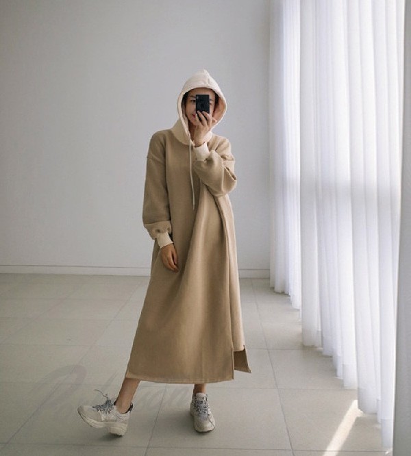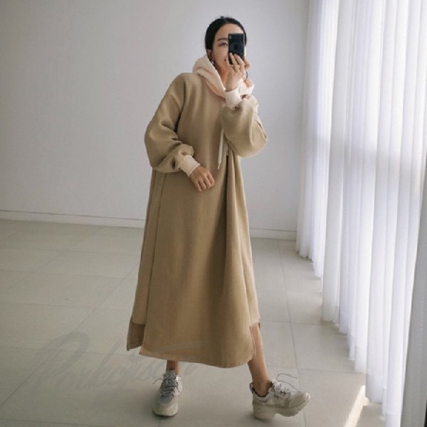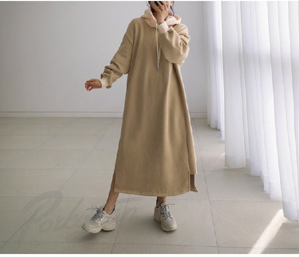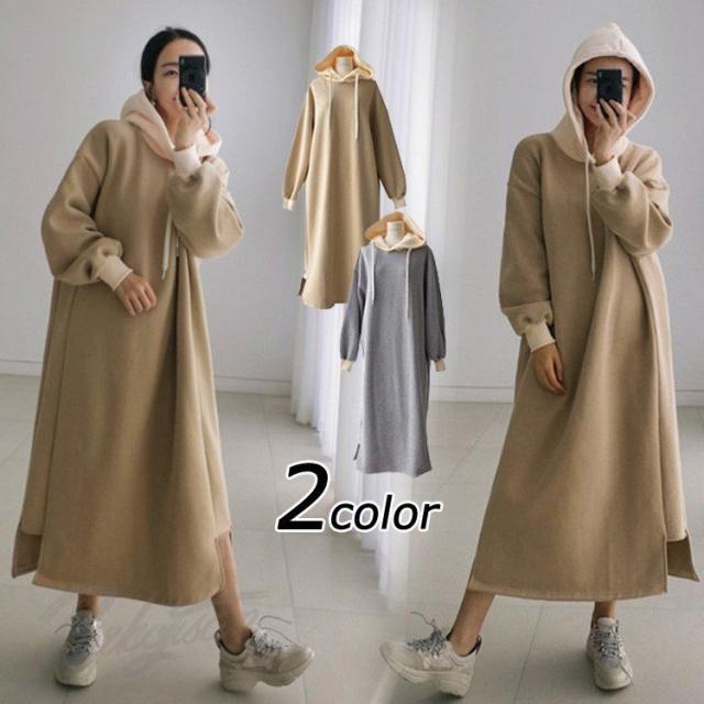 スウェットワンピース レディース 秋冬 ジャージ おしゃれ 長袖スウェットワンピース フード付き ロング丈 BF風 韓国風 スポーツカジュアル スウェット 新作