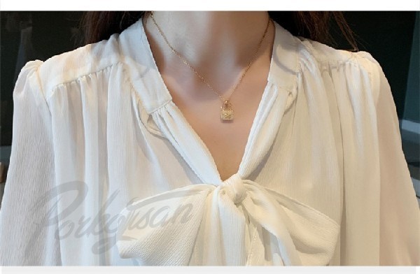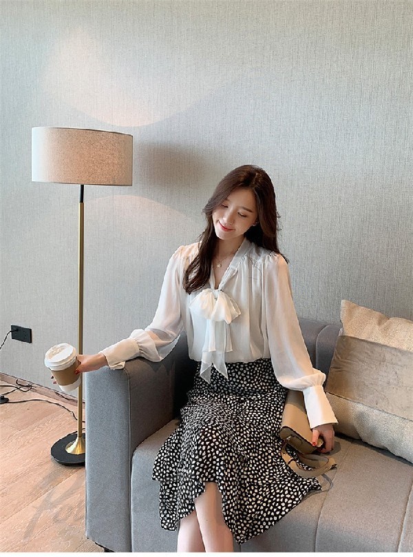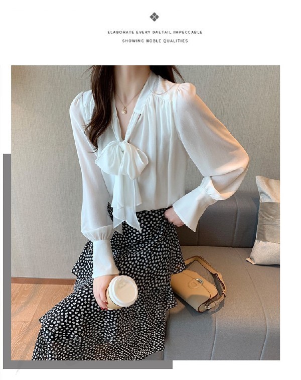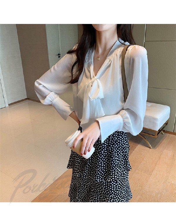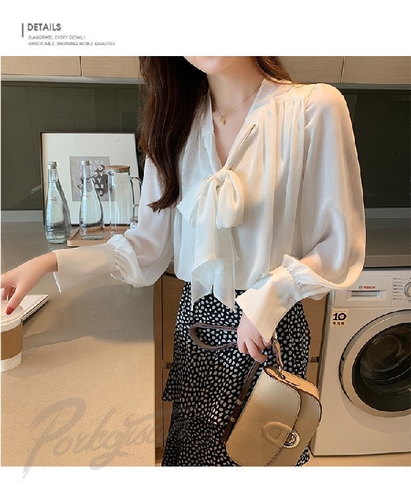 ブラウス レディース 春秋 おしゃれ 長袖 リボンネック シフォンブラウス パフスリーブ 大きいサイズ シャツ トップス 韓国風 通勤 着痩せ 新作