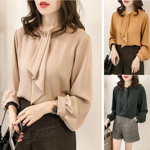 ブラウス レディース 春秋 無地 シフォン ブラウス 長袖 ブラウス トップス グリーン イエロー あんずいろ ブラウス 着痩せ きれいめ 通勤 着痩せ 上品