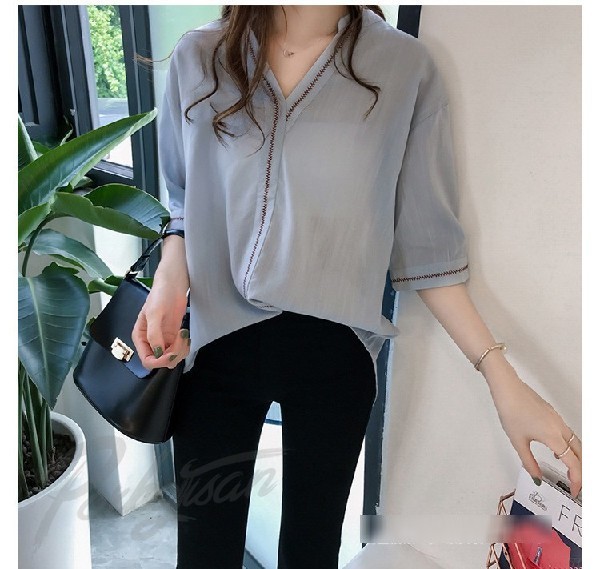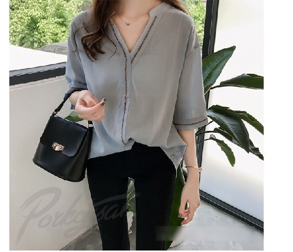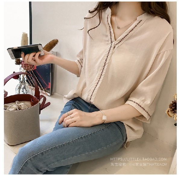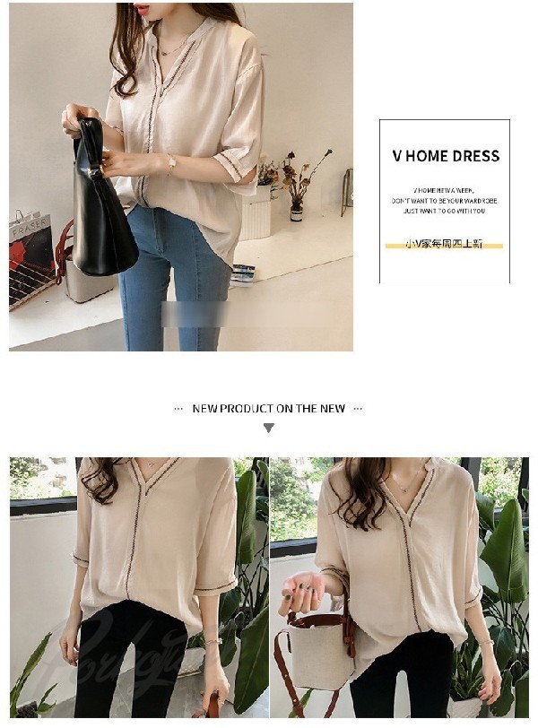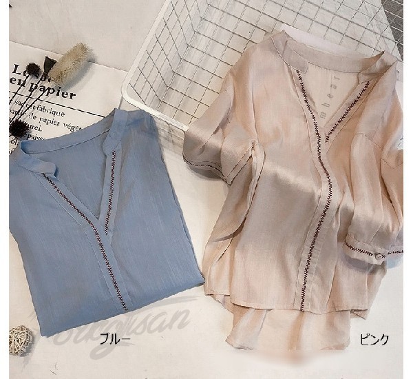 ブラウス レディース 春夏 vネックブラウス 五分袖 ブラウス シャツ オシャレフォーマル ブラウス トップス ゆったり 通勤 OL オシャレ 大人 上品