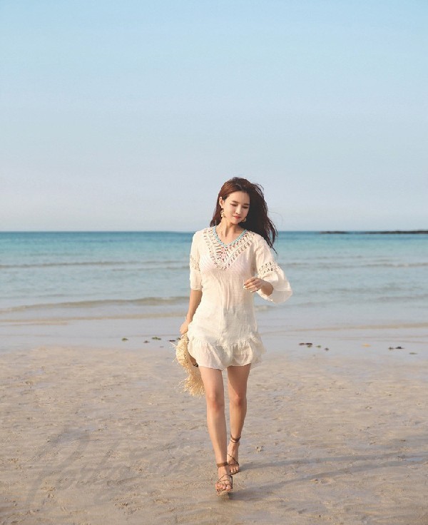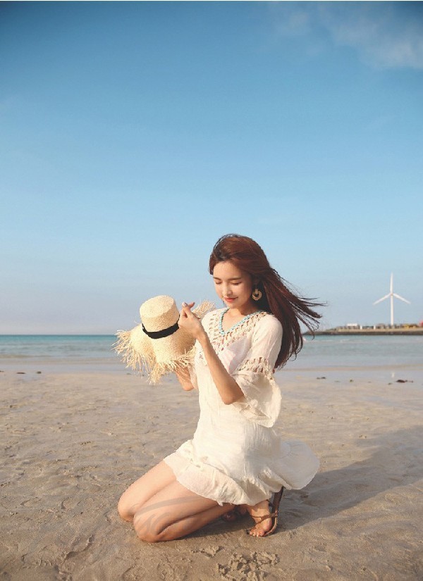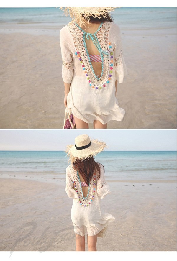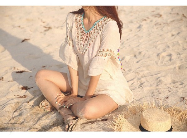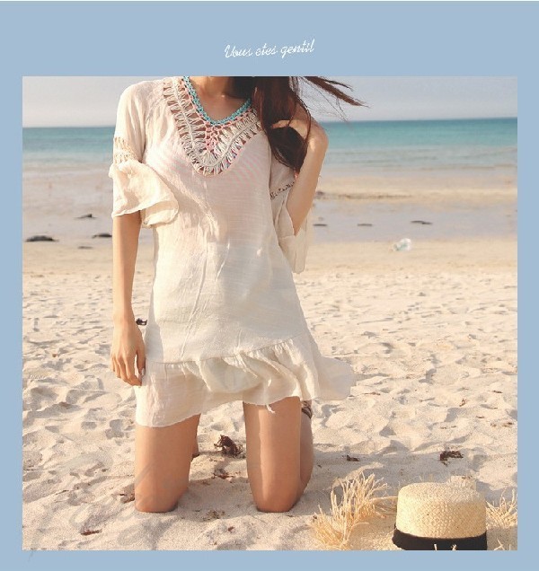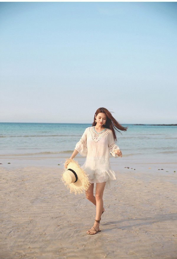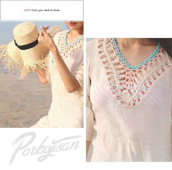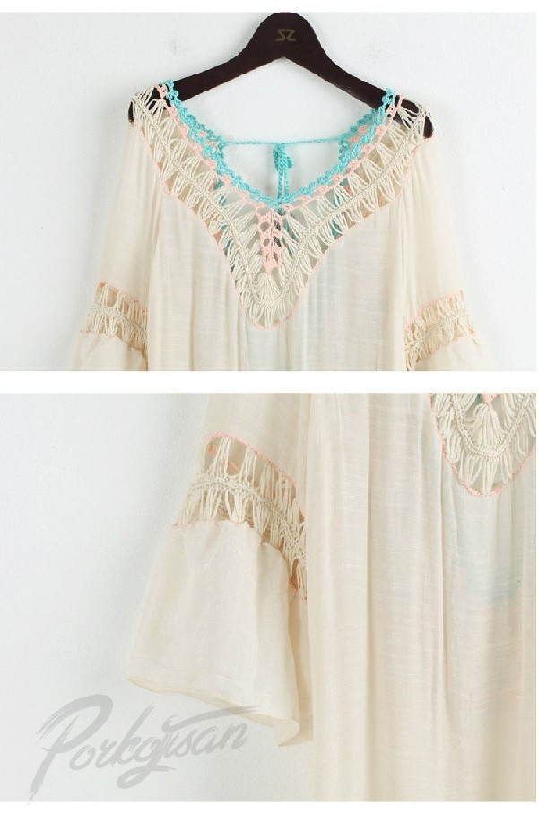 レースブラウス レディース uvカット 羽織 ブラウス チュニック 七分袖 ロング丈ブラウス レース 夏 ビーチウェア カバーアップ 薄手 紫外線カット