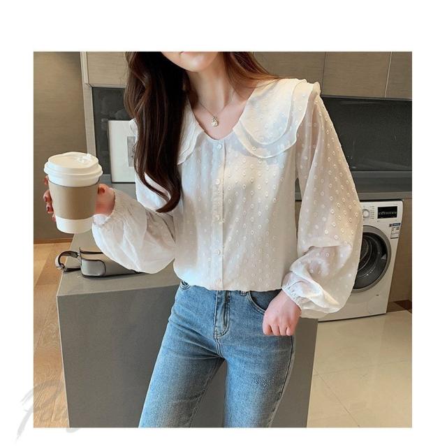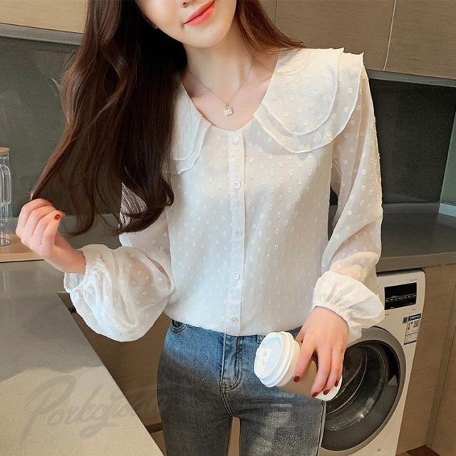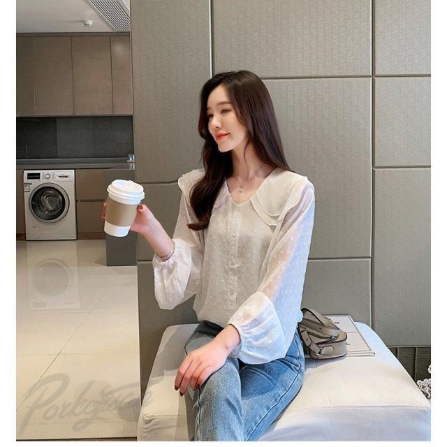 ブラウス レディース 春秋新作 長袖ブラウス シフォン ドット柄 ブラウス 丸首 シャツトップス 白ブラウス おしゃれ 韓国風 フォーマル 通勤OL ブラウス 着痩せ