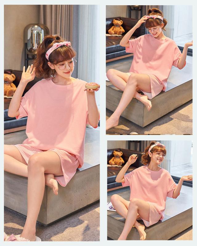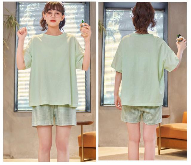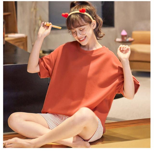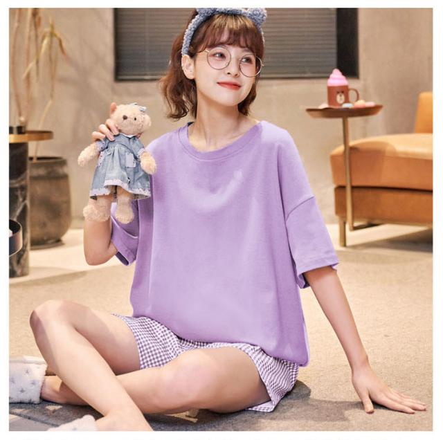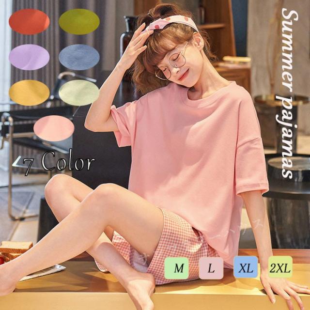 パジャマ レディース 夏 ルームウェア 部屋着 セットアップ 半袖 寝巻き 綿 チェック柄 ショートパンツ 韓国 大きいサイズ 着心地 おしゃれ 着やすい 出かける