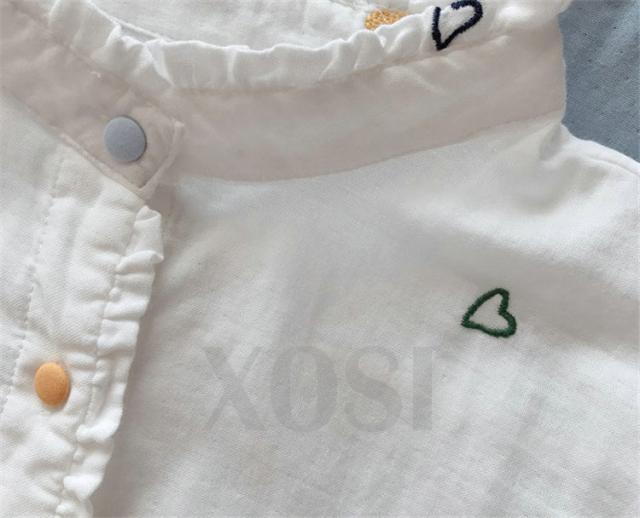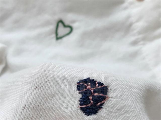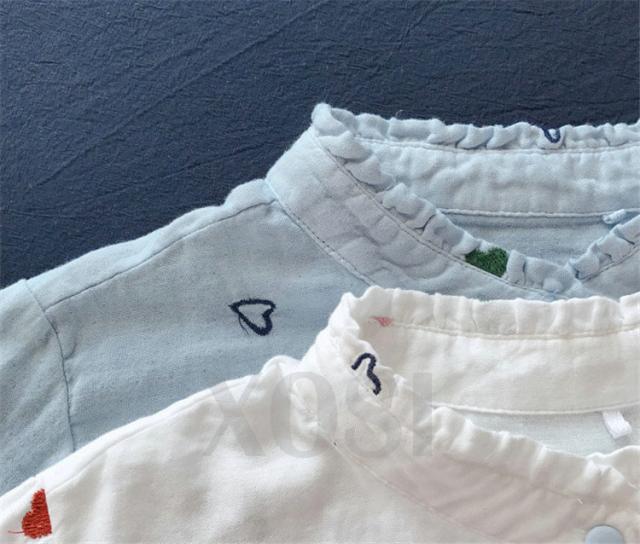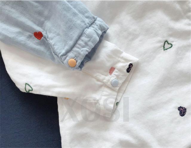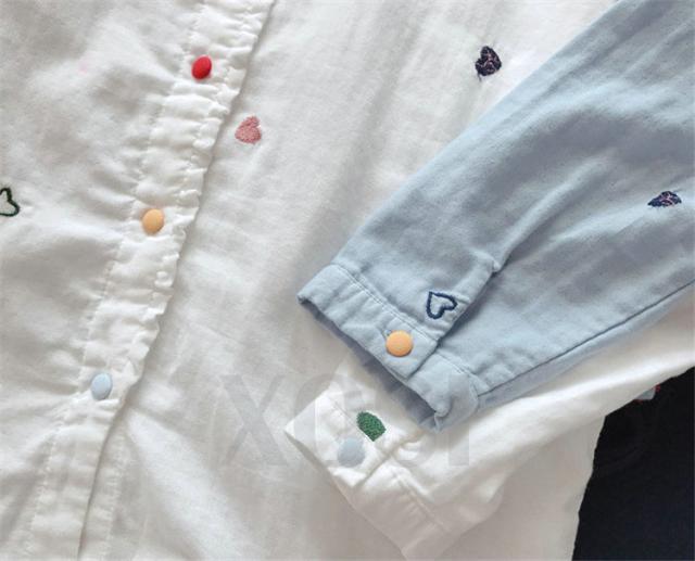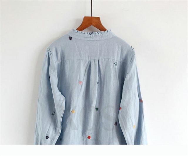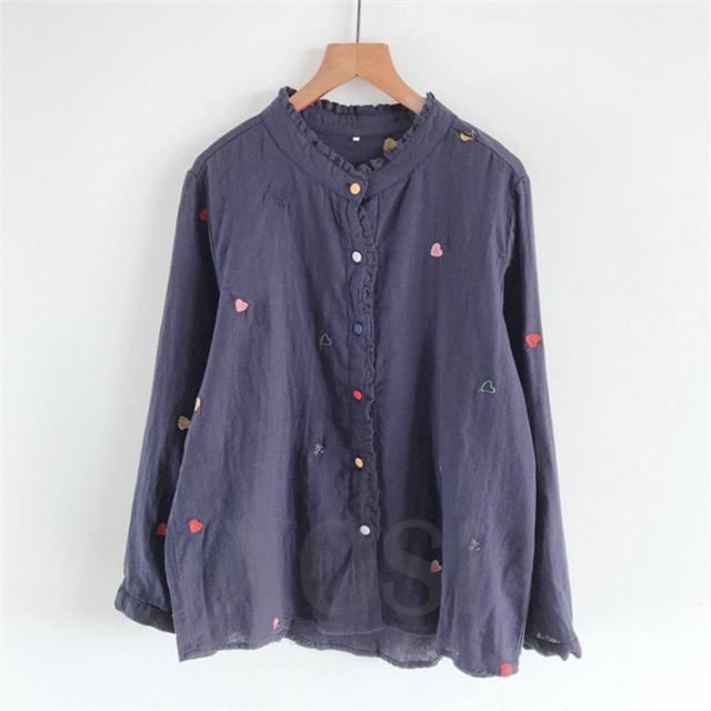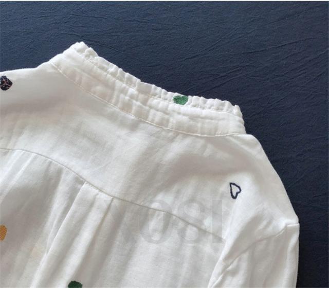 トップス シャツ ブラウス トップス レディース 前後差 前開き 長袖 柄 2層 ガーゼ コットン 刺繍 ボタンデザイン ゆったり シンプル カジュアル 可愛い 春 秋