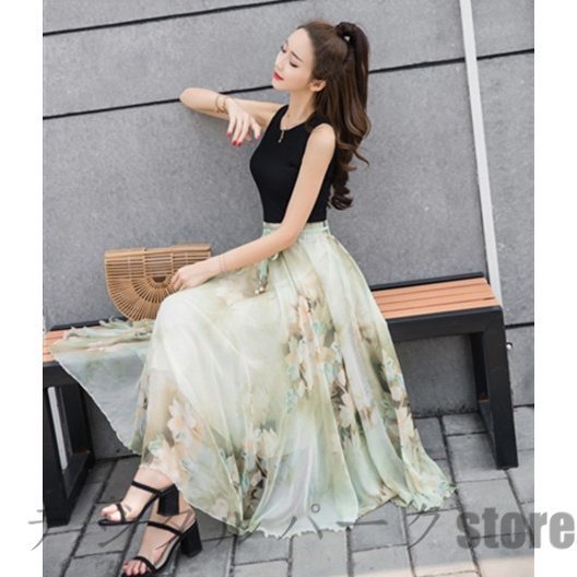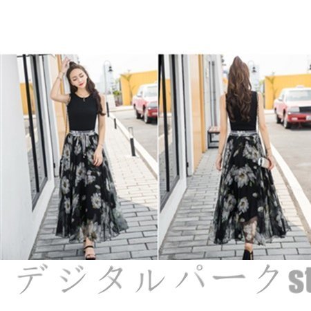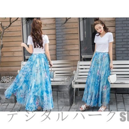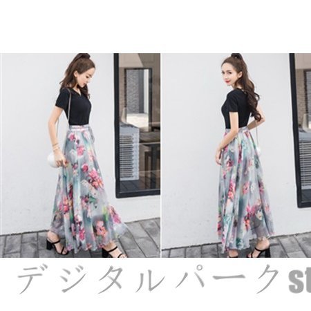 スカート レディース 40代 春夏 マキシ丈スカート 花柄 ミモレ丈スカート ロングスカート Aライン ボトムス 美脚