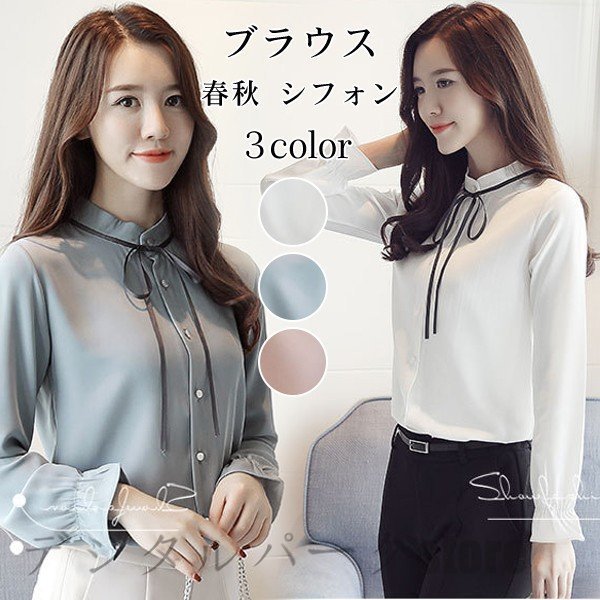 ブラウス レディース シフォンシャツ ブラウス春秋 長袖 リボン オフィス 韓国風 ブラウス フォーマル 通勤 OL 着痩せ オシャレ 大人