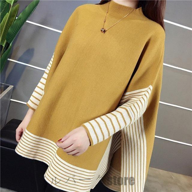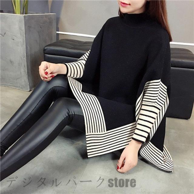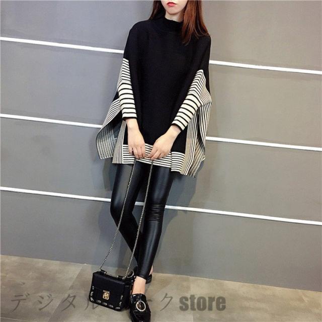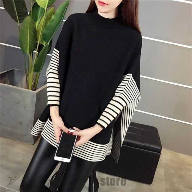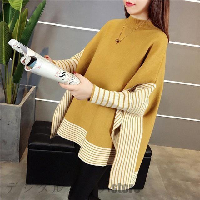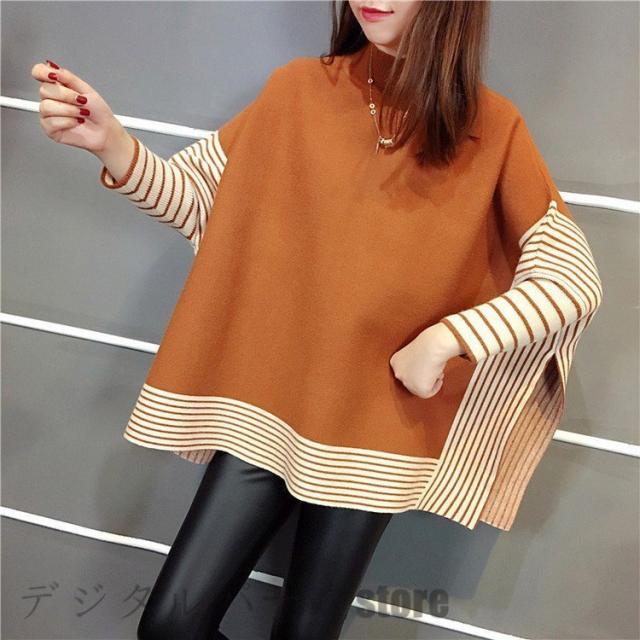 ニットセーター レディース 40代 秋冬 長袖 ニットソー ボーダー ドルマンスリーブ ニットセーター 韓国風 トップス ゆったり 通勤 オシャレ 着痩せ 3色