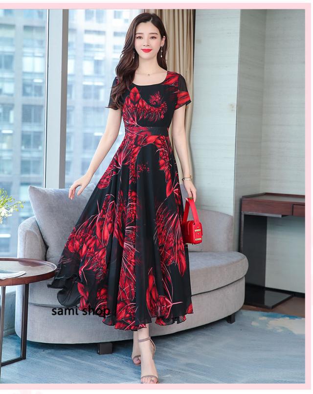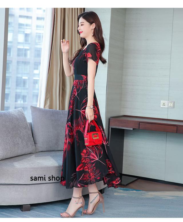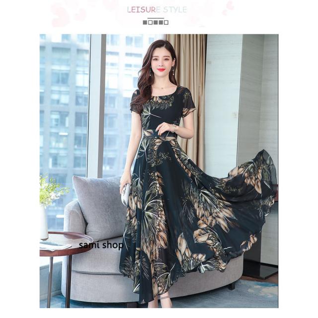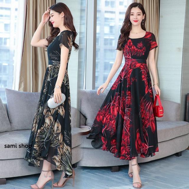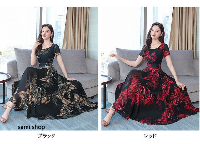 マキシワンピース ワンピース レディース ロングワンピース 大きいサイズ おしゃれ 花柄 vネック Aライン きれいめ 着痩せ 40代