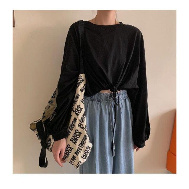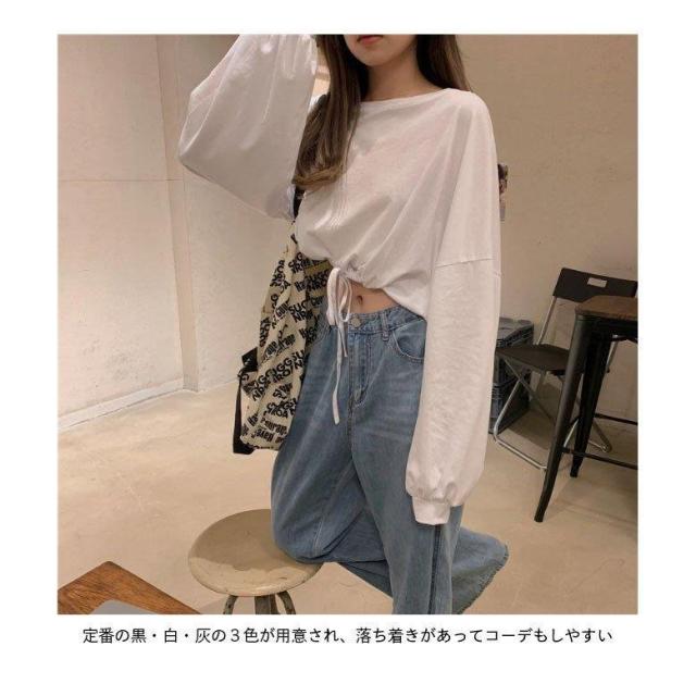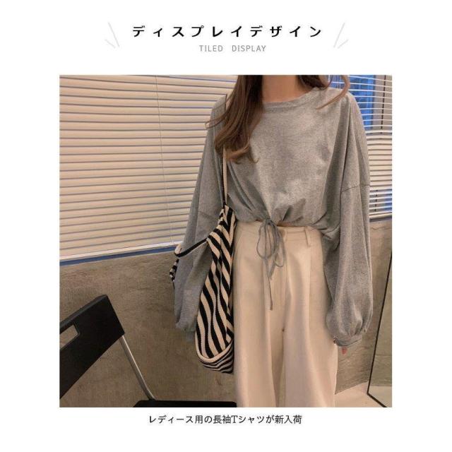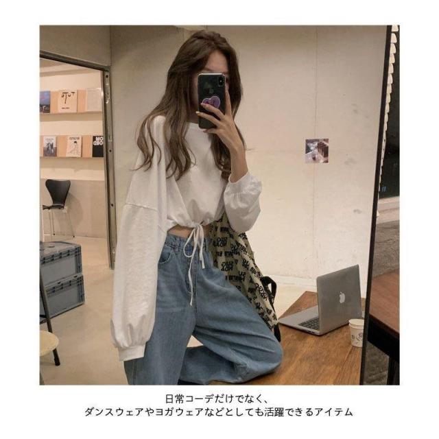 Tシャツ へそ出し レディース 長袖Tシャツ ショート丈 ヘソ出しTシャツ カットソー ゆったり 無地 へそ出しトップス ヨガ ダンスウェア レトロ