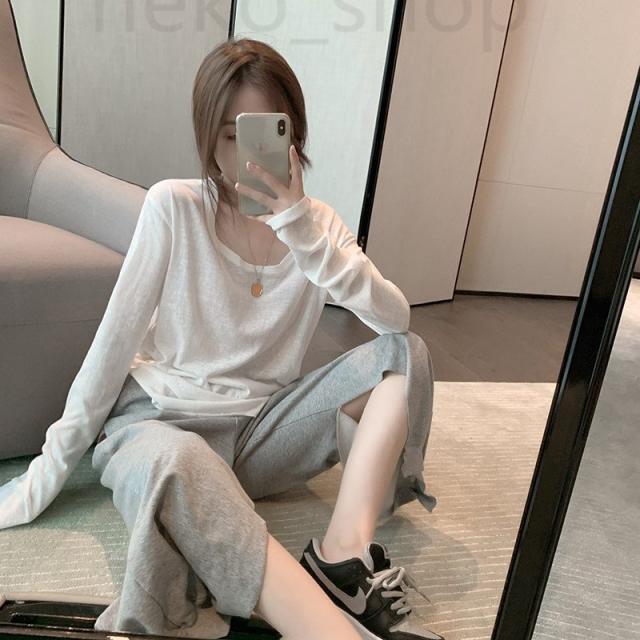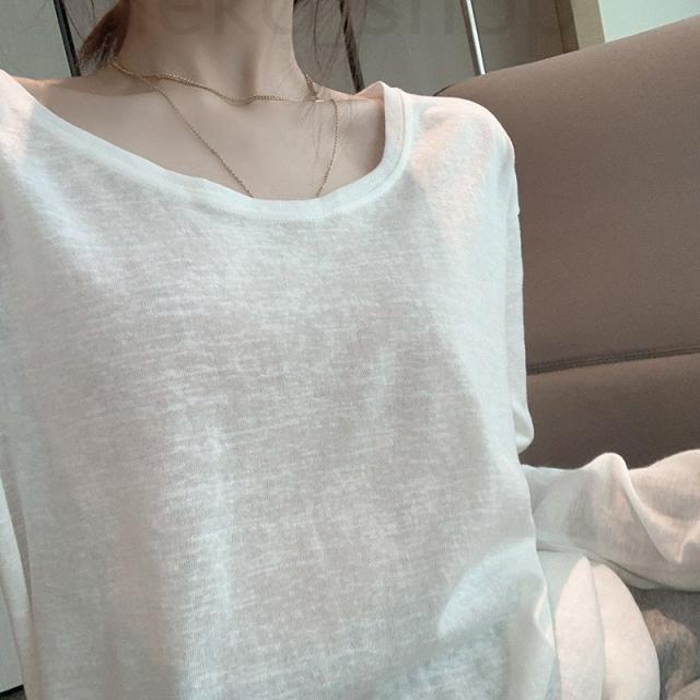 シースルー インナー トップス レディース 長袖 Tシャツ プルオーバー ゆったり 無地 コーデ ホワイト 春服 秋服 UVカット 紫外線対策 冷房対策 シンプル