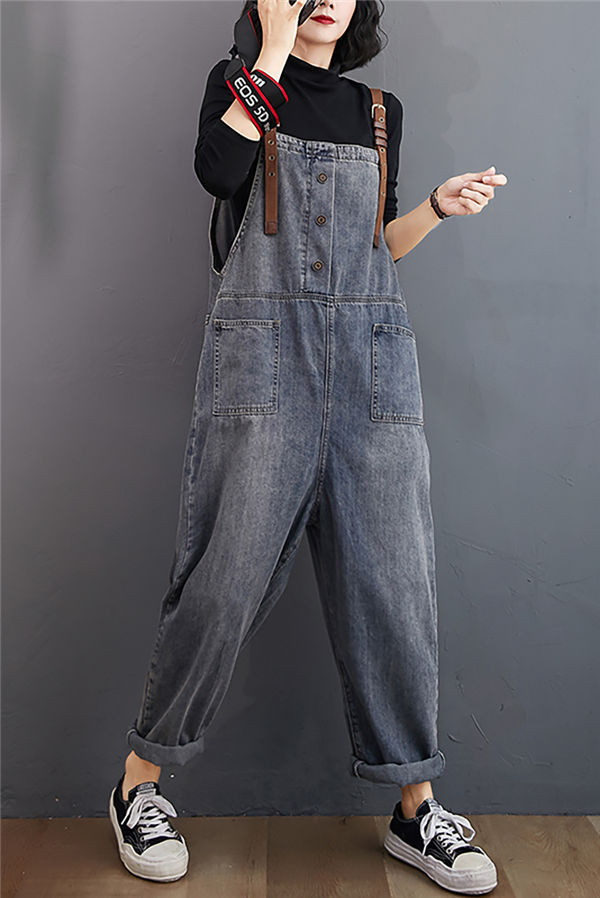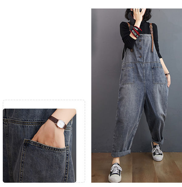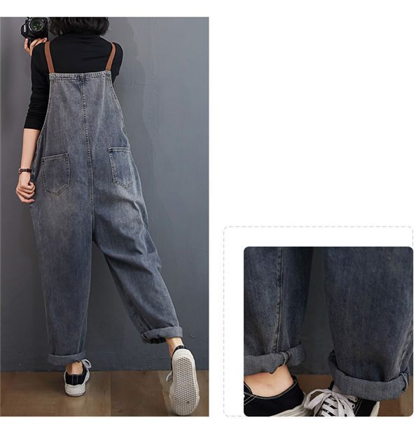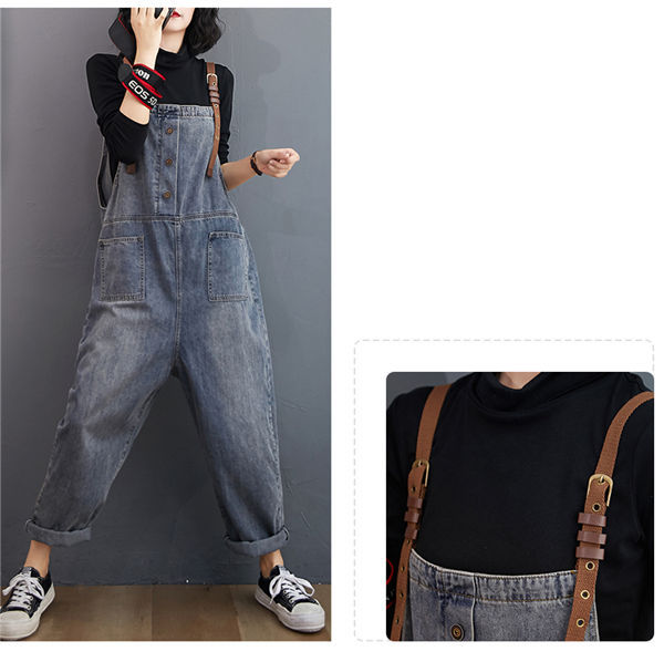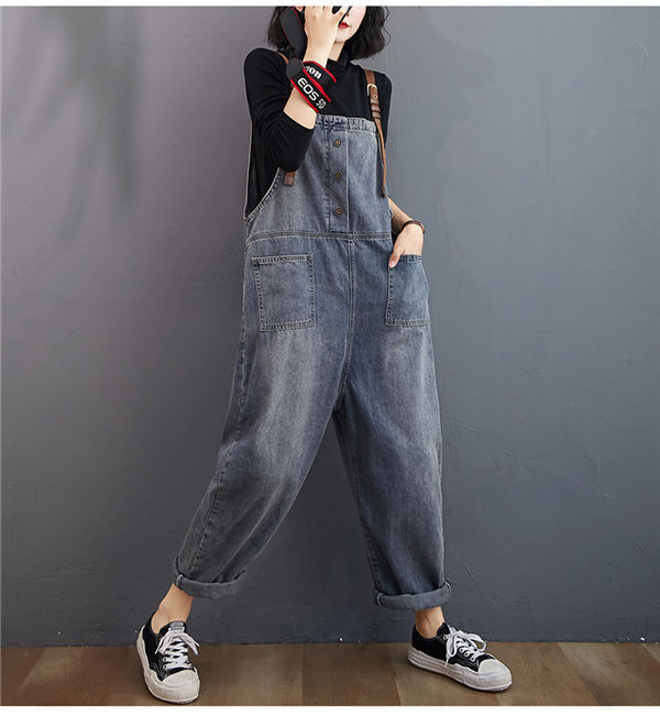 サロペット レディース ブルーデニムサロペット ロング オールインワン 大人 可愛い 大きいサイズ ゆったり ワイド カジュアルパンツ 春秋
