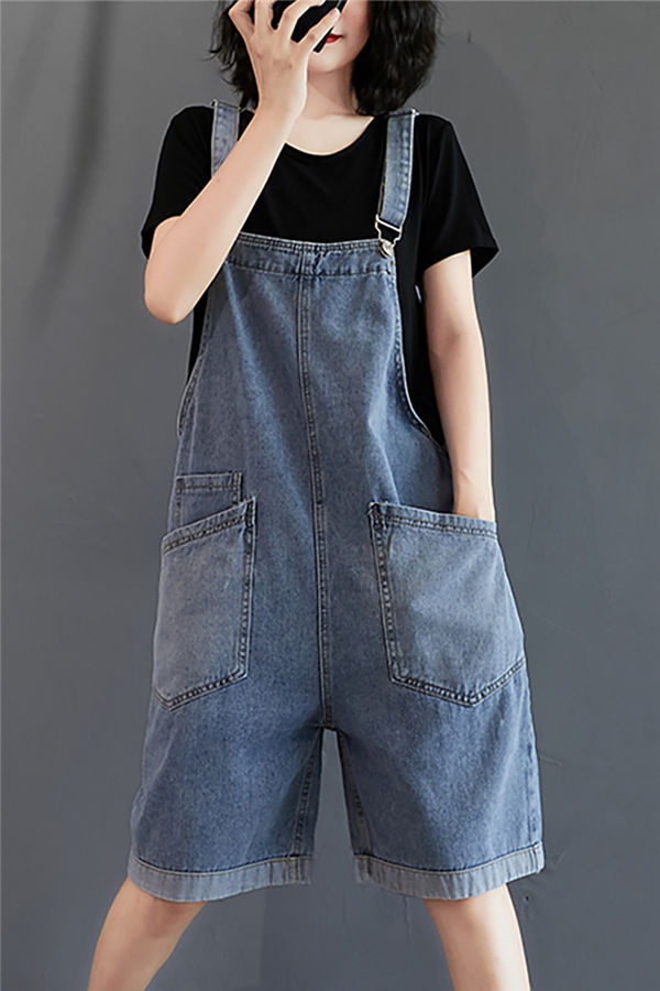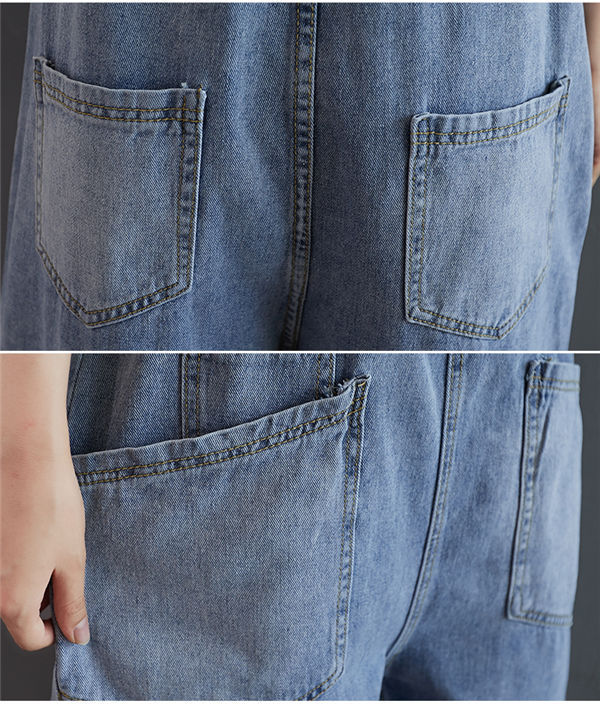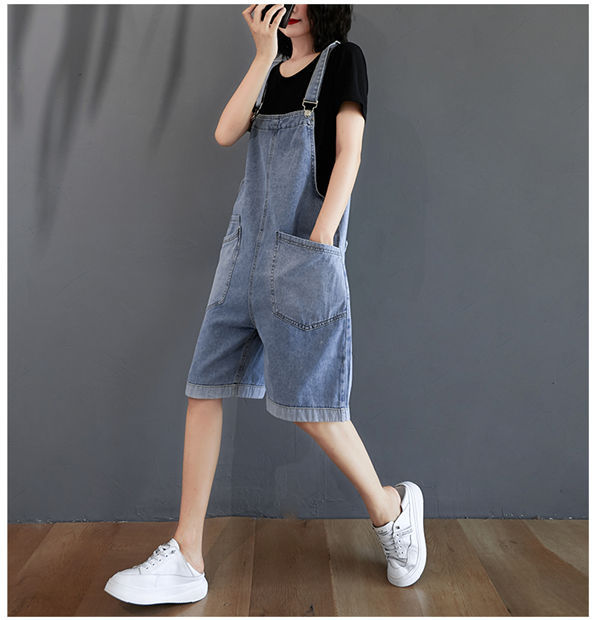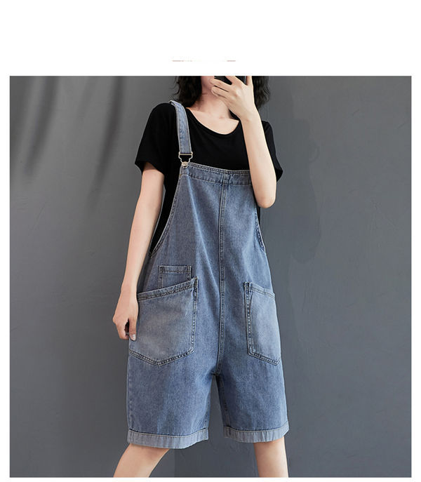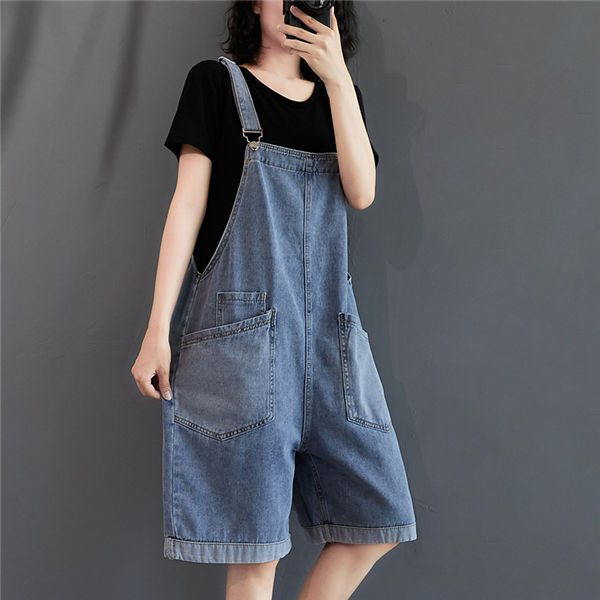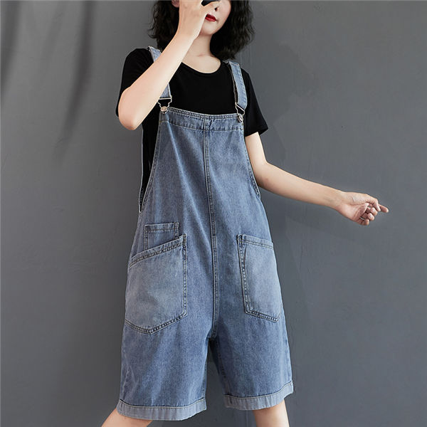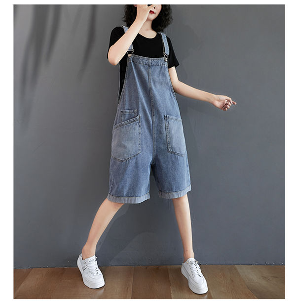サロペットデニムパンツ レディース オーバーオール 5分丈 大人 可愛い デニムパンツ 大きいサイズ ワイドパンツ サロペット 夏 着やせ ゆったり