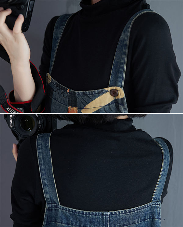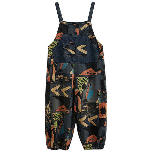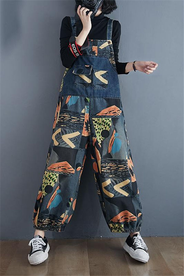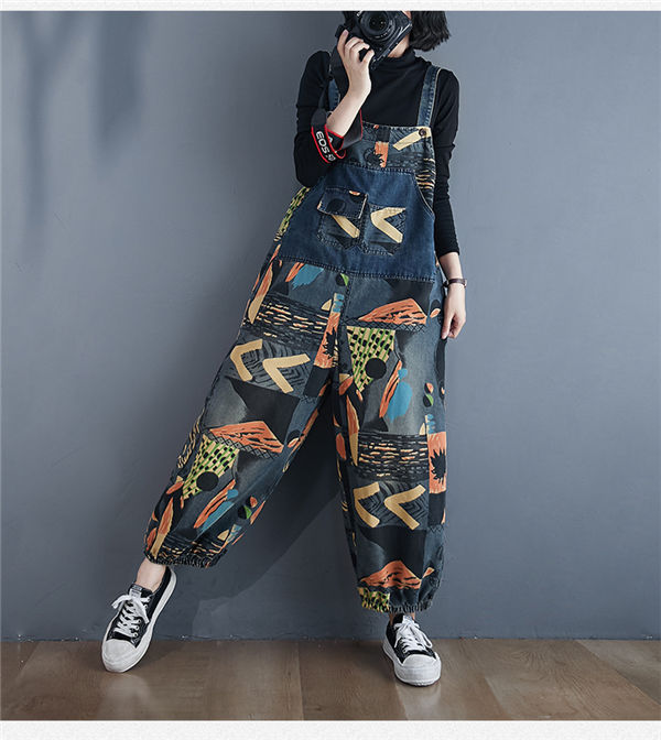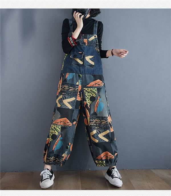 サロペットデニムパンツ レディース オーバーオール サルエル デニムパンツ 9分丈 ハイウエストシルエット プリント 女性 サロペット 夏 着やせ
