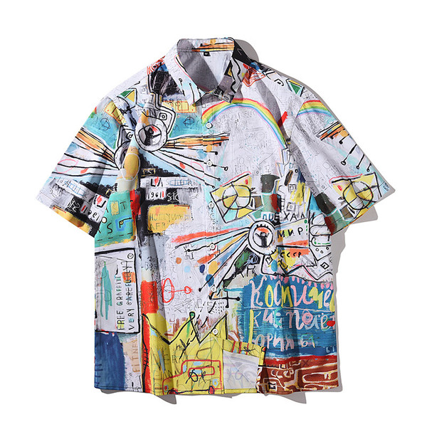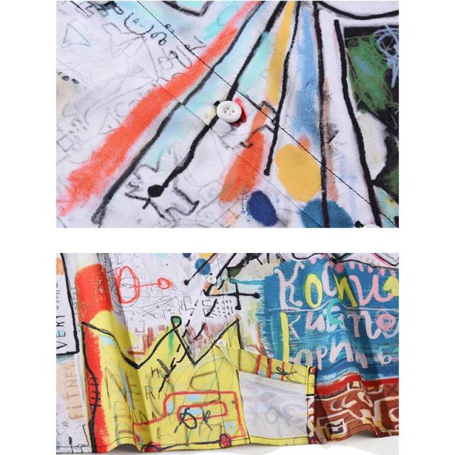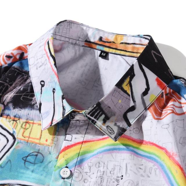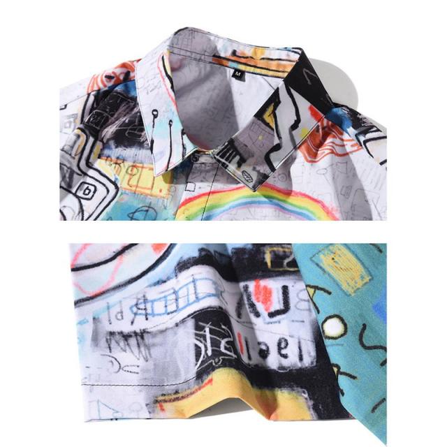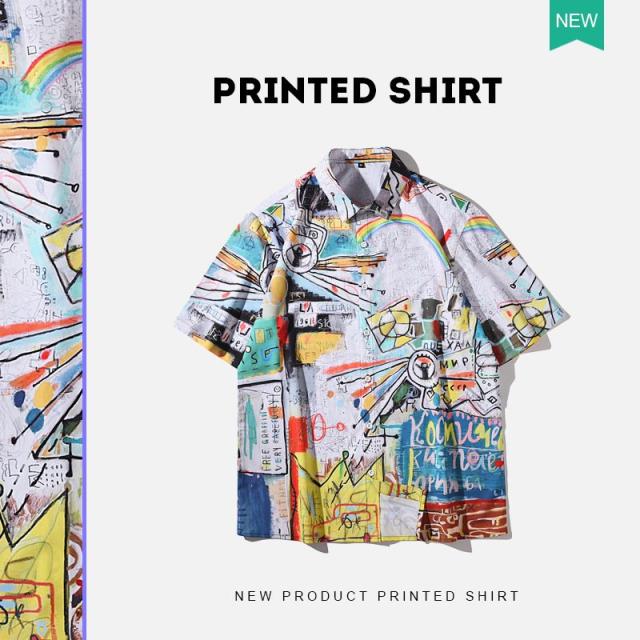 原宿系 メンズ ボイス ストリート ゆったり シャツ ブラウス 落書き プリント トップス ヒップホップ 漫画 個性的 半袖 デザイン 体型カバー プルオーバー