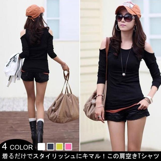 オフショルダーTシャツ 肩空き レディースTシャツ 長袖Tシャツ オフショル 長袖 トップス 無地 春秋