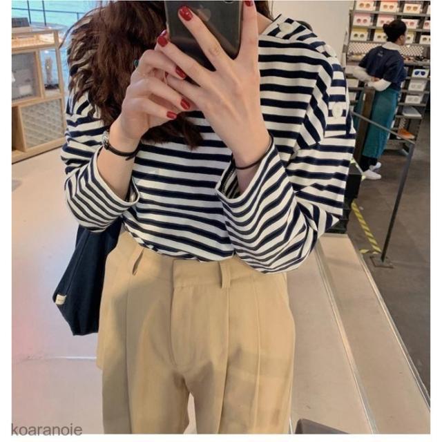 Tシャツ 長袖 レディース ボーダー柄 カットソー 長袖Tシャツ ゆったり マリンセーラー Tシャツ 縞柄 レトロ ボーダー柄Tシャツ 春秋
