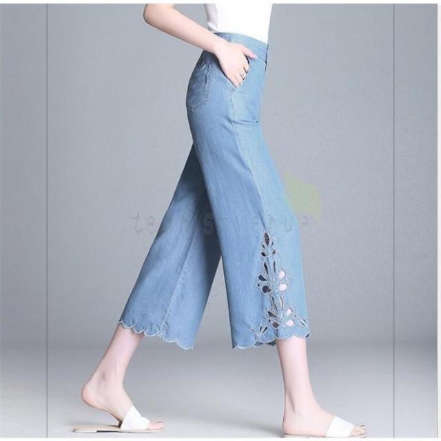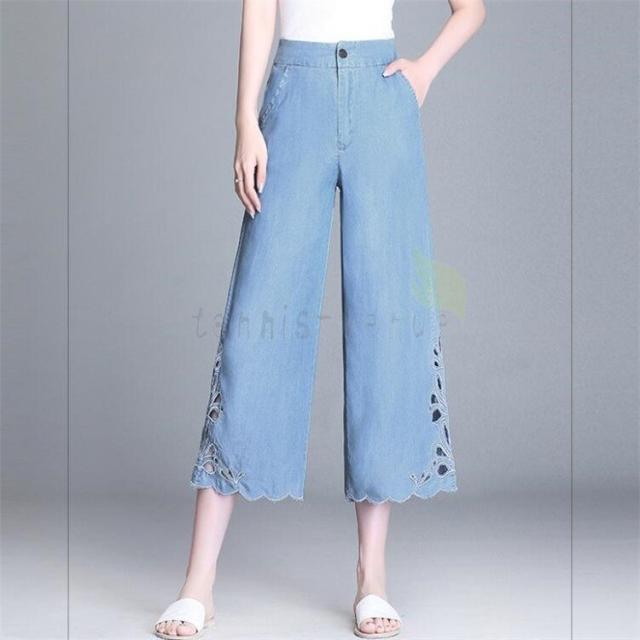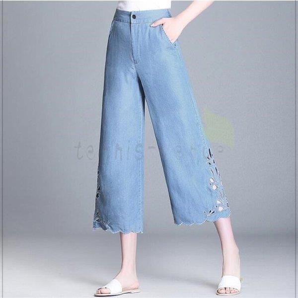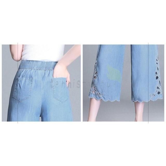 デニムパンツ レディース 七分丈 ワイドパンツ ボーイフレンド ジーパン デニム 着痩せ ファッション ロールアップ 韓国 デニム