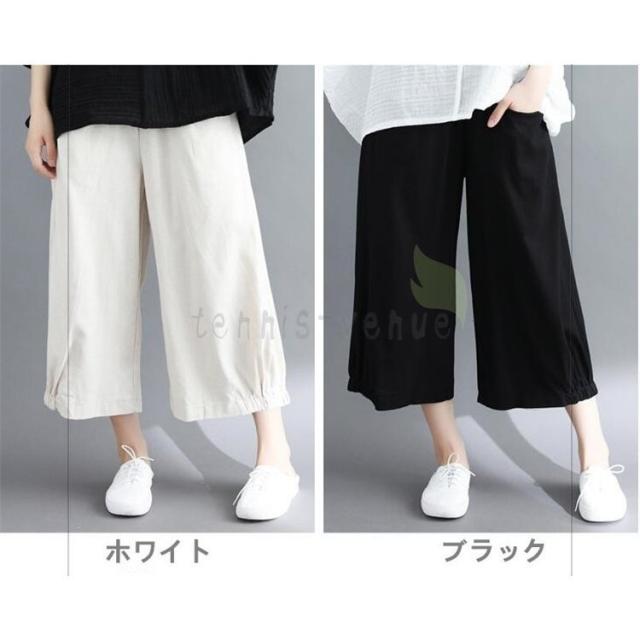 パンツ レディース ワイドパンツ 九分丈 ゆったり 夏 綿 着痩せ 黒 白ワイドパンツ 体型カバー ズボン コットン 全2色 接触冷感 軽薄 韓国