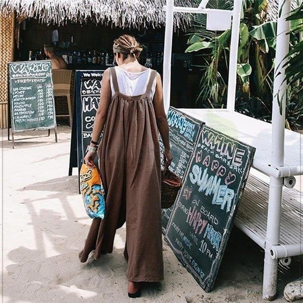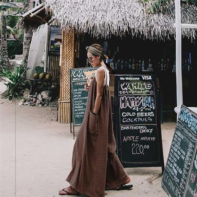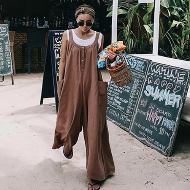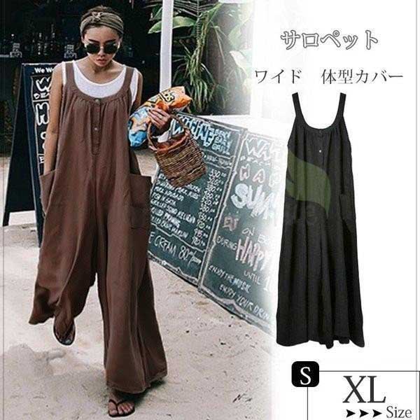 サロペット リネン レディース オールインワン 夏 ワイドパンツ オーバーオール キャミソール ガウチョパンツ カジュアル リネンパンツ ゆったり 体型カバー