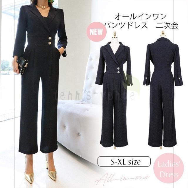 オールインワン ワイドパンツ スーツパンツ レディース パンツドレス 結婚式 ドレス ガウチョパンツ パーティードレス フォーマル 二次会 ドレス 通勤 OL