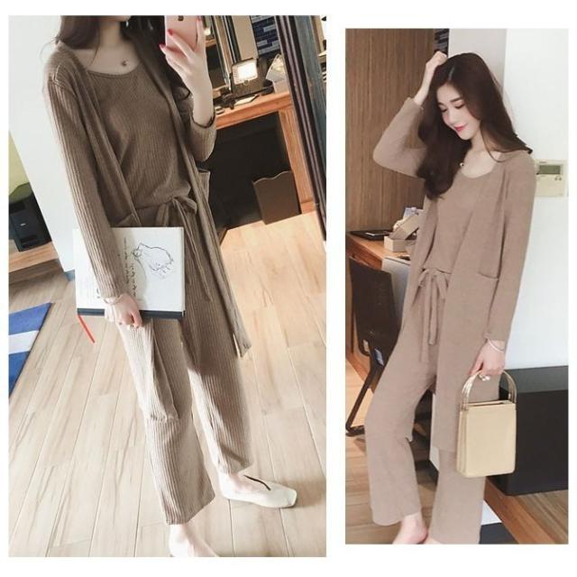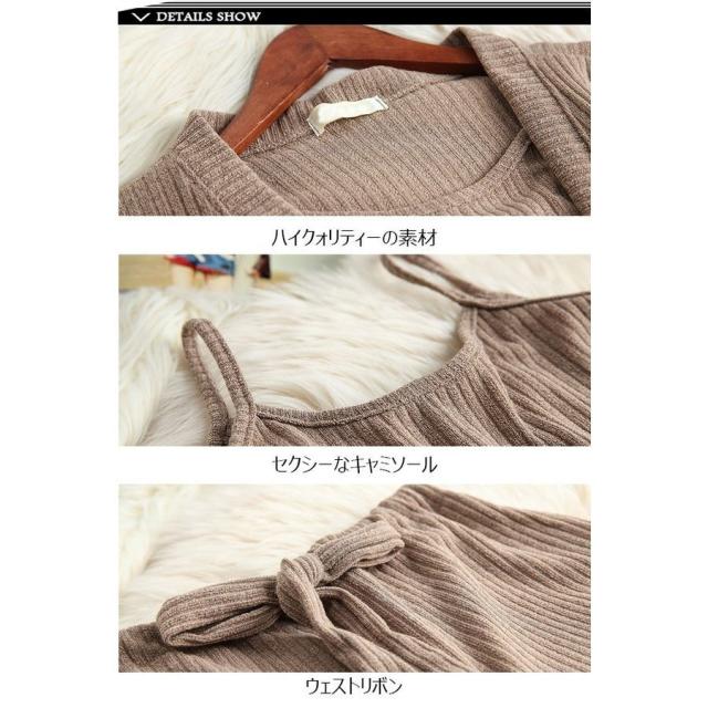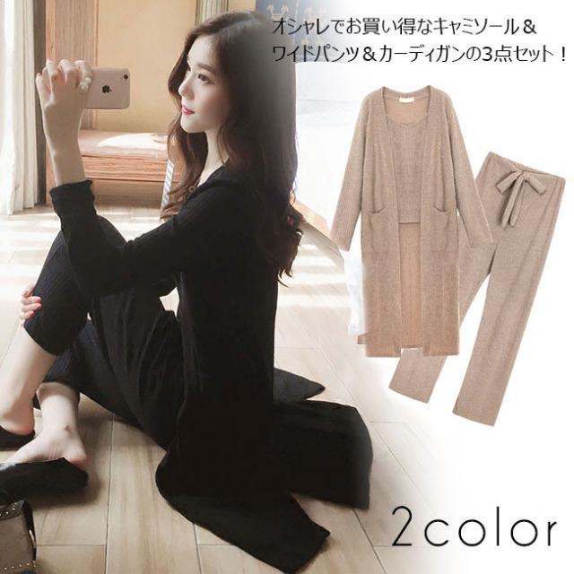 セットアップ キャミソール ワイドパンツ カーディガンの3点セット 3点ニットセット アウター ガウチョパンツ 2020春新作