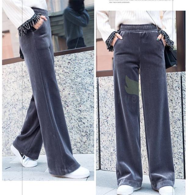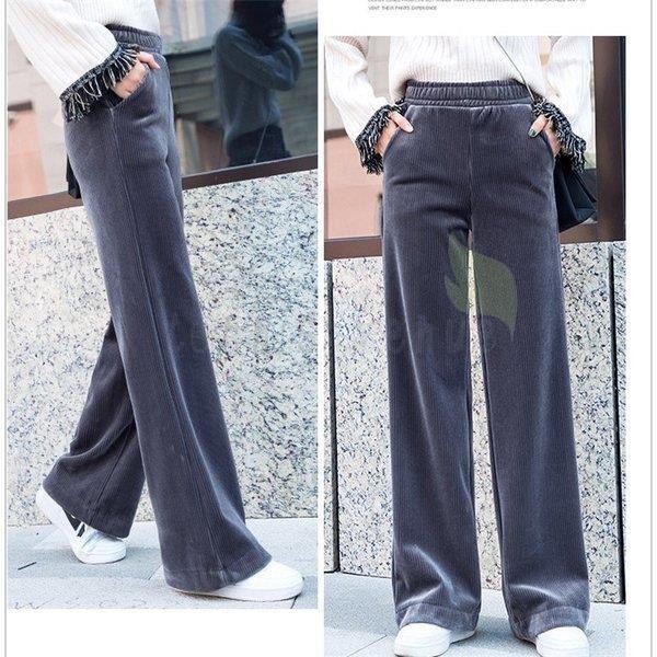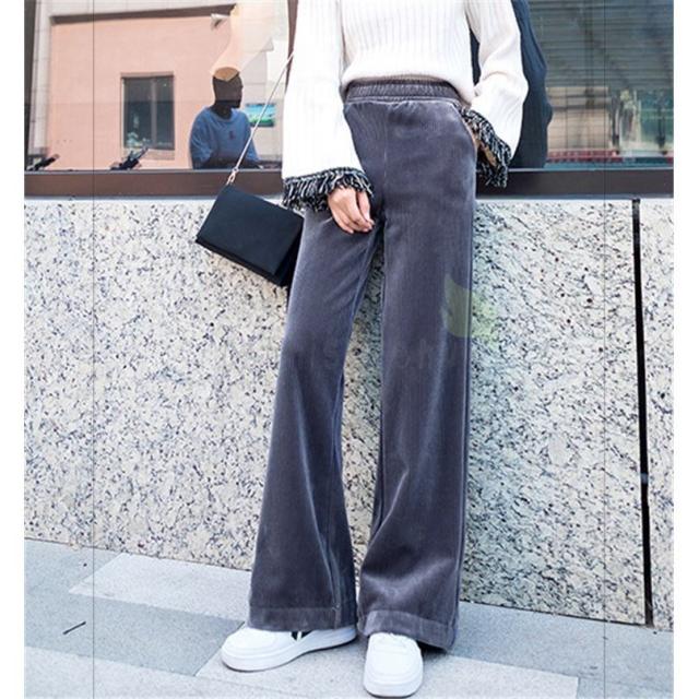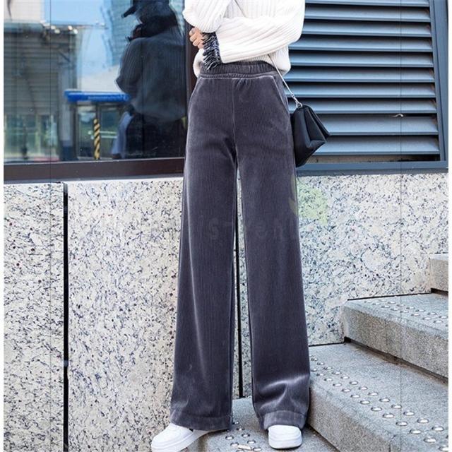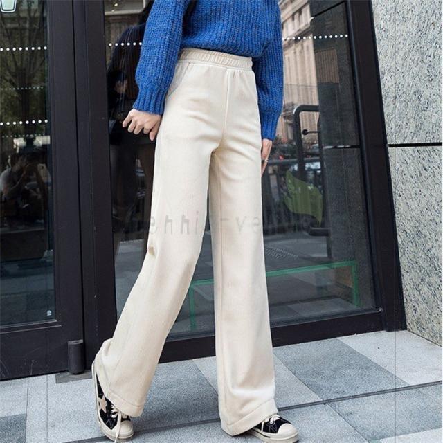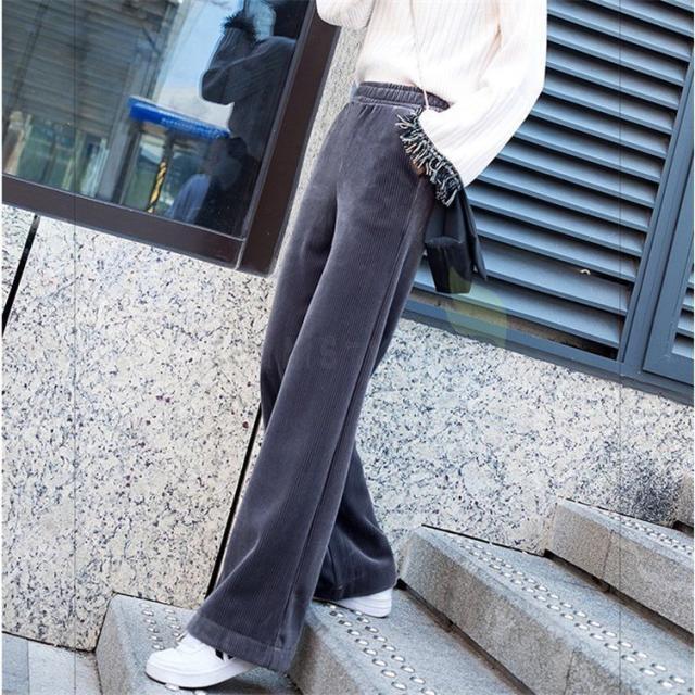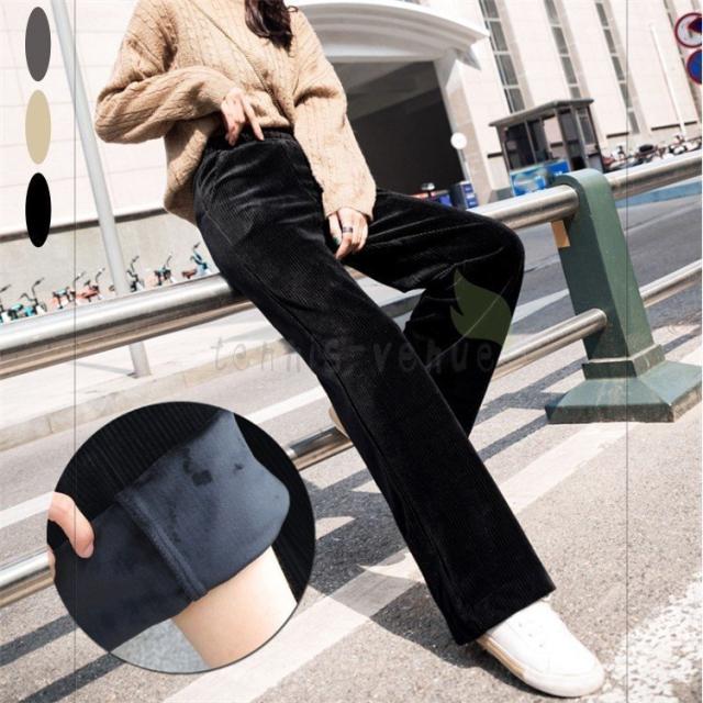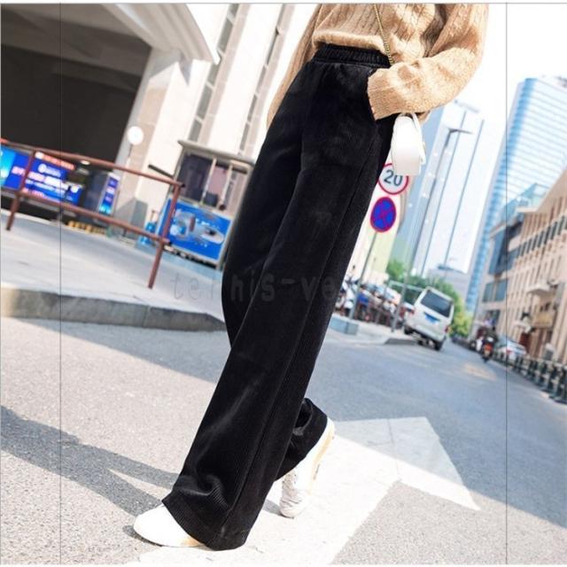 ワイドパンツ レディース 冬 ガウチョパンツ 裏起毛 ロング丈パンツ コーデュロイ 体型カバー ウエストゴム 無地 黒パンツ コーデ 着痩せ 大きいサイズ 黒