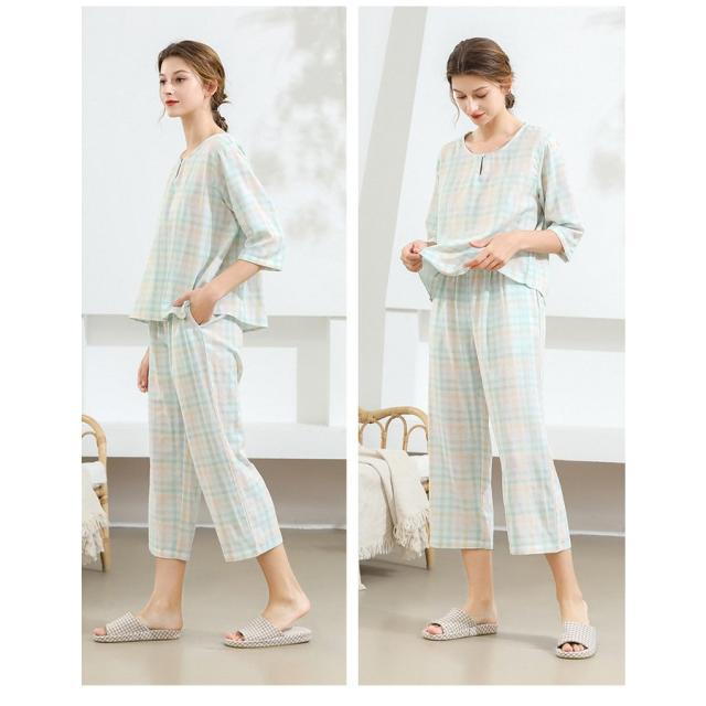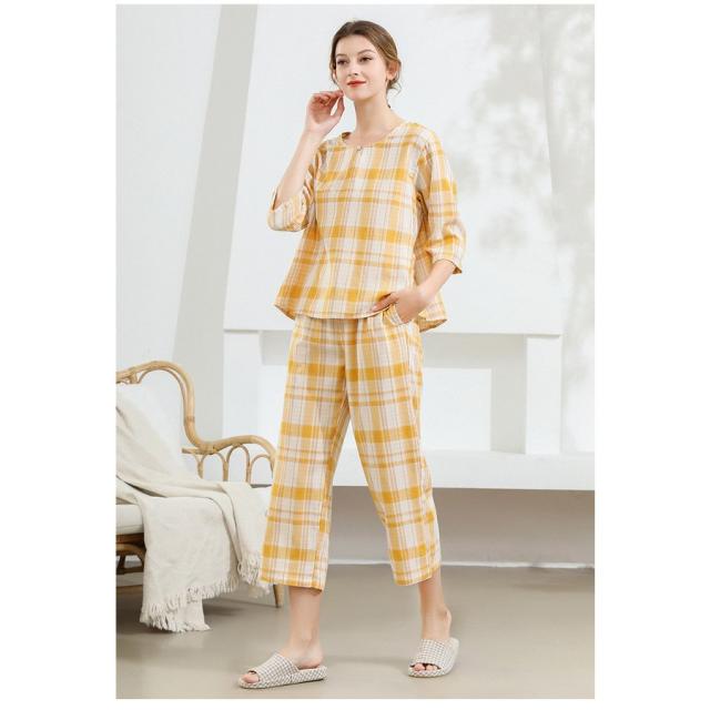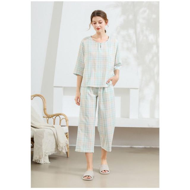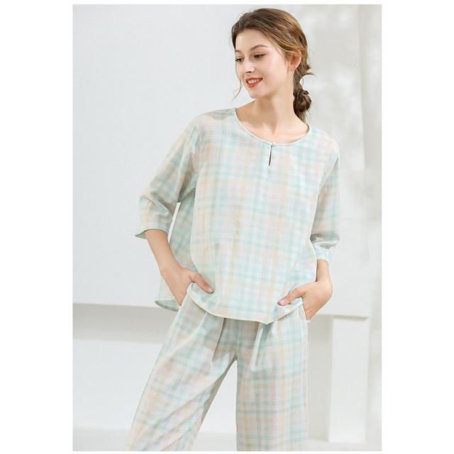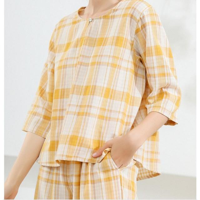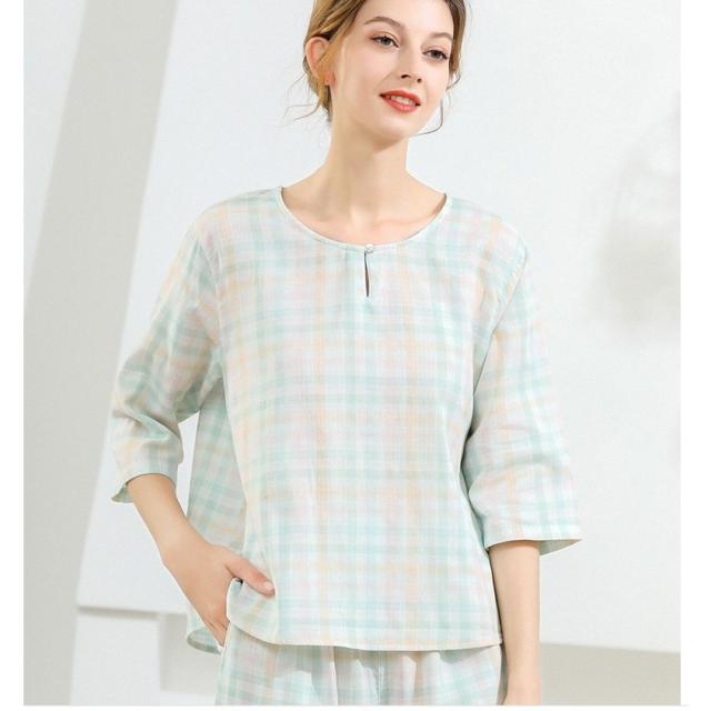 パジャマ チェック柄ルームウェア チェックパジャマ 綿 パジャマ シャツパジャマ ルームウェア レディース パジャマ ダブルガーゼ パジャマ レディース