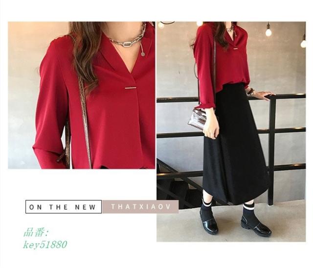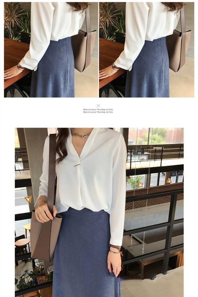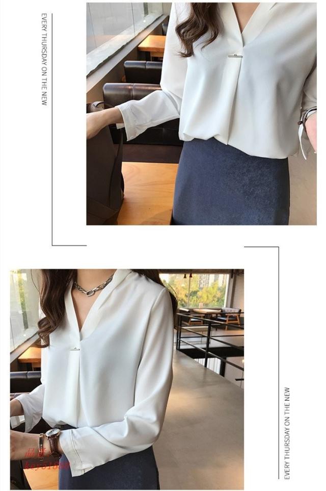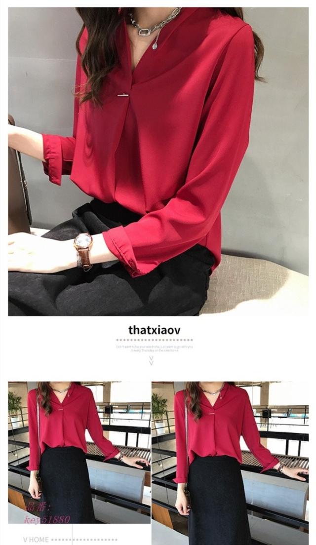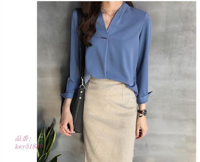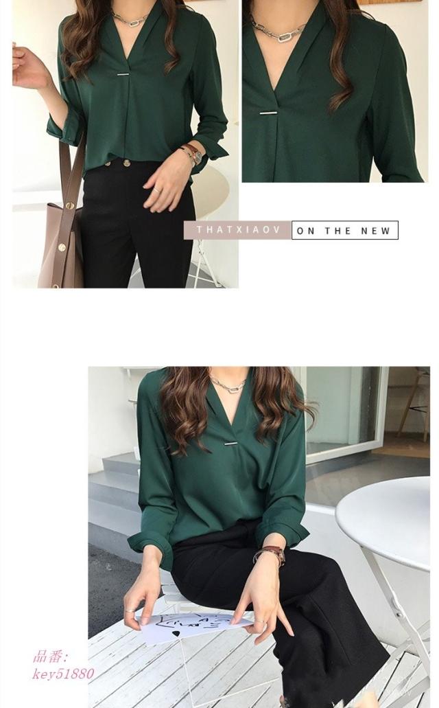 シャツ ブラウス レディース 入園式 40代 Vネック シンプル 上品 秋 お洒落 母親 30代 通勤 シフォンシャツ 白シャツ 着痩せ 大人 長袖 OL 春
