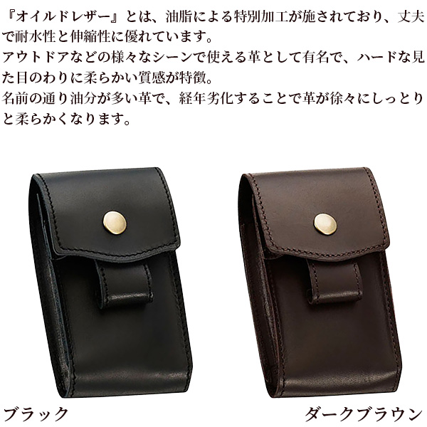 ベルトループ付きオイルドレザーのタバコケース。ベルトループにはカードスペースもついています。