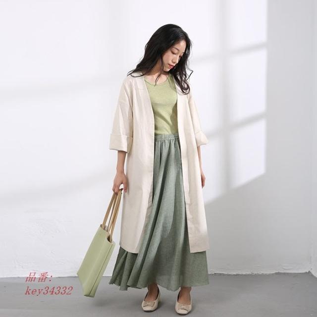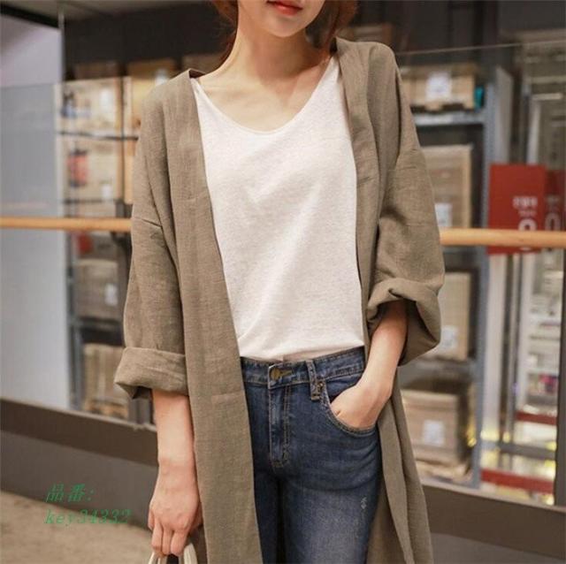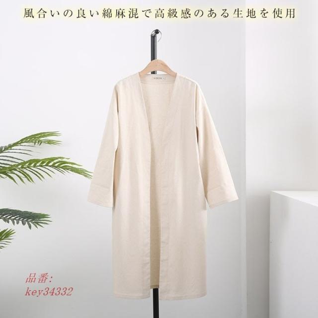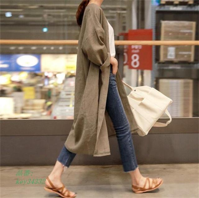 カーディガン 超ロング レディース 秋 羽織り スプリングコート 夏 トレンチコート 綿麻混 UVカット コットンリネン 体型カバー 前開き 薄手