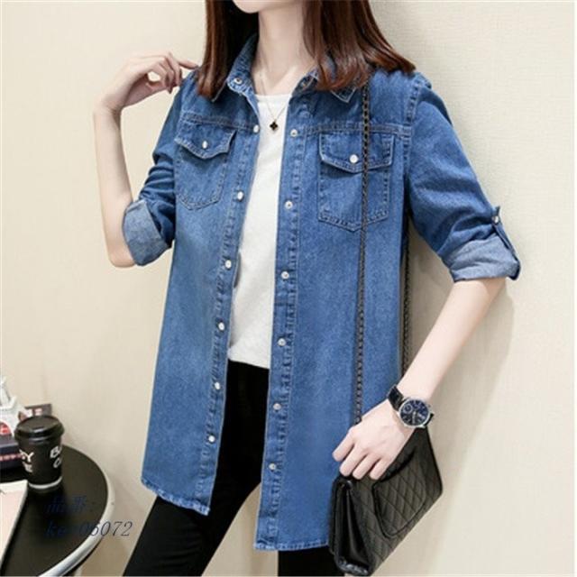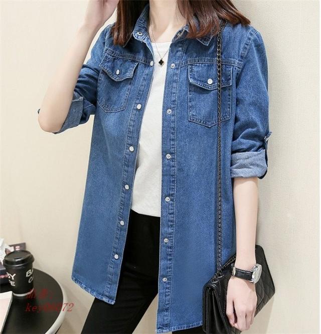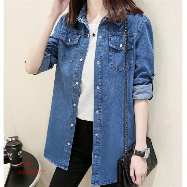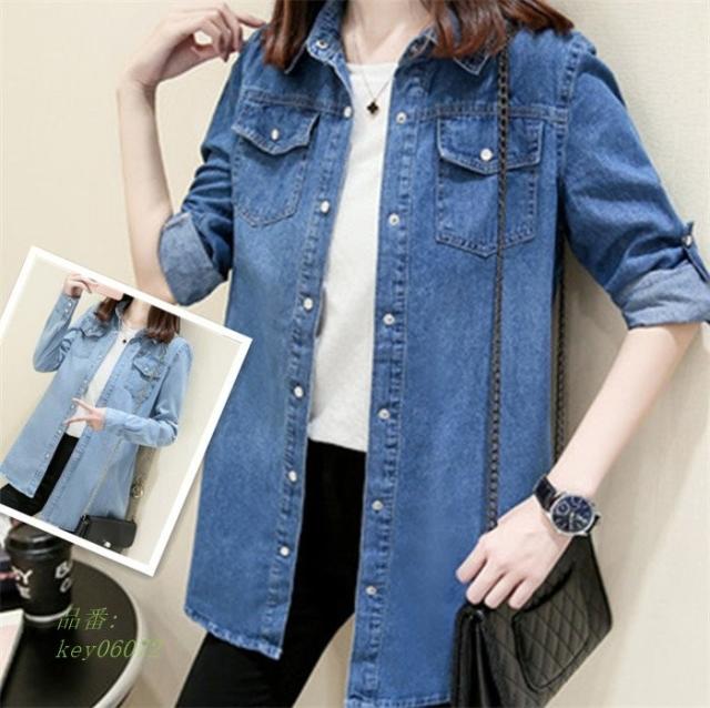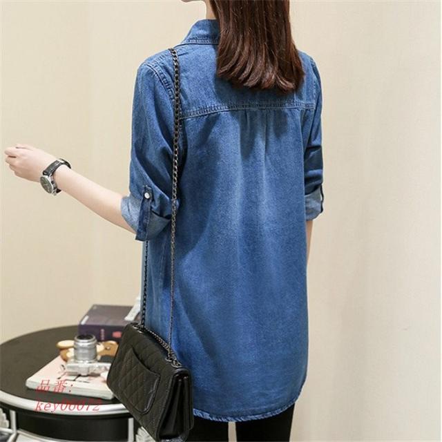 シャツ デニム レディース 通勤 ブラウス 大人 上品 トップス 春シャツ デニムブラウス 長袖 デニムシャツ OL カジュアルシャツ 大きいサイズ 40代 無地 30代