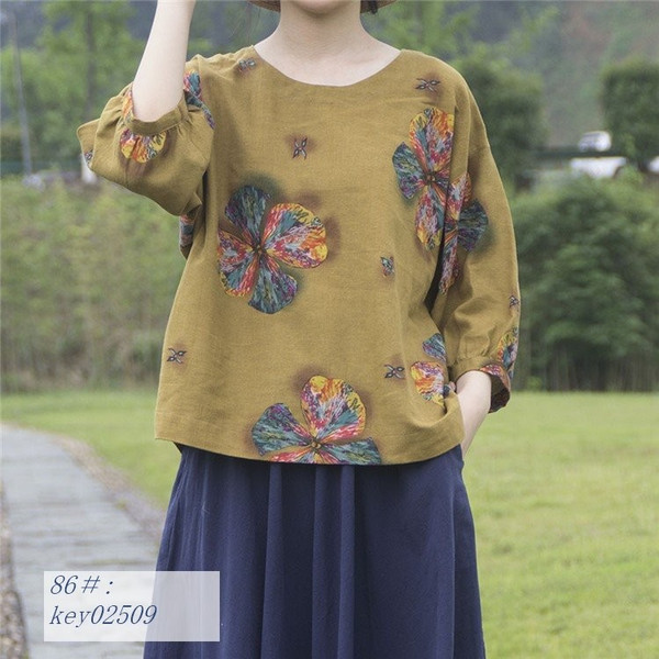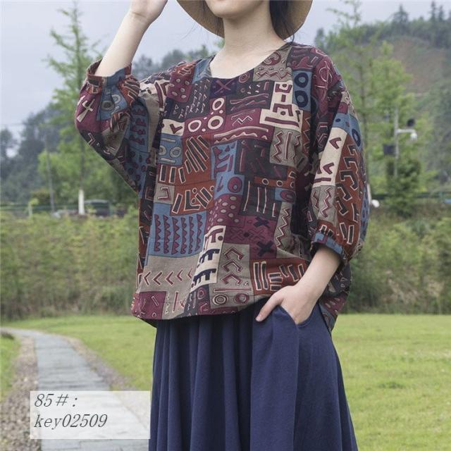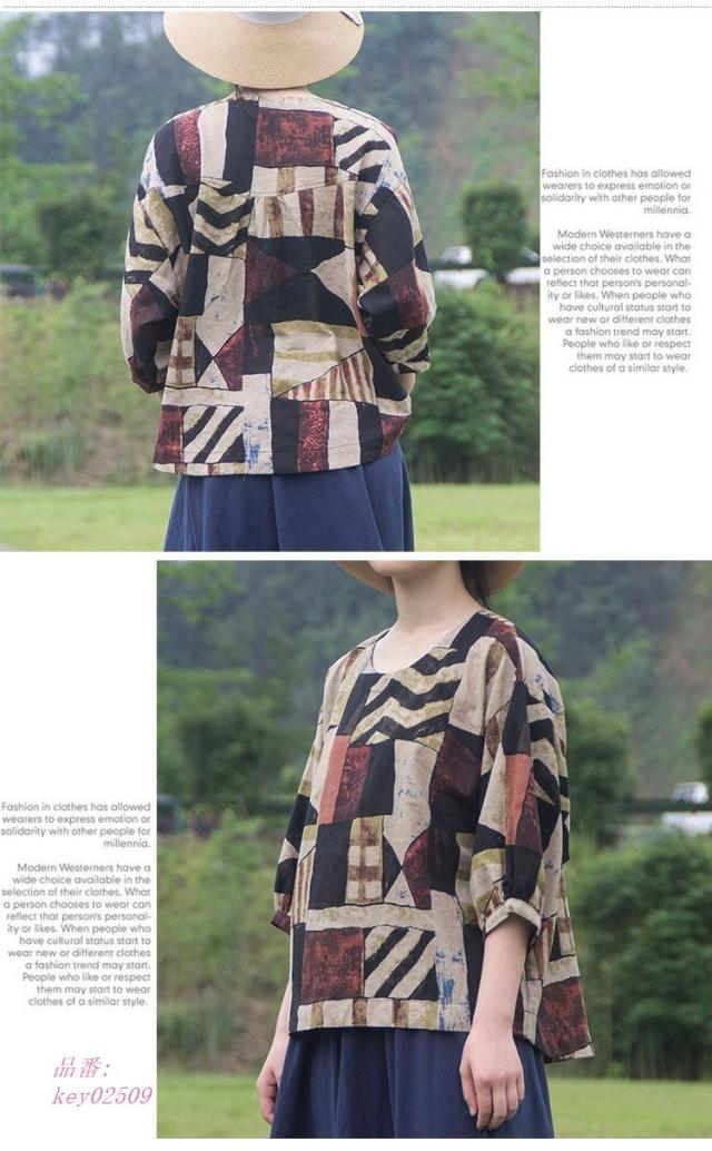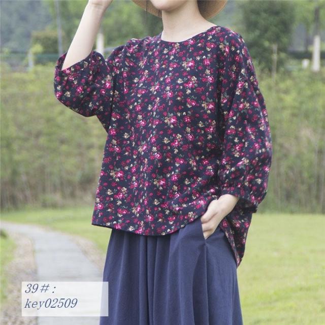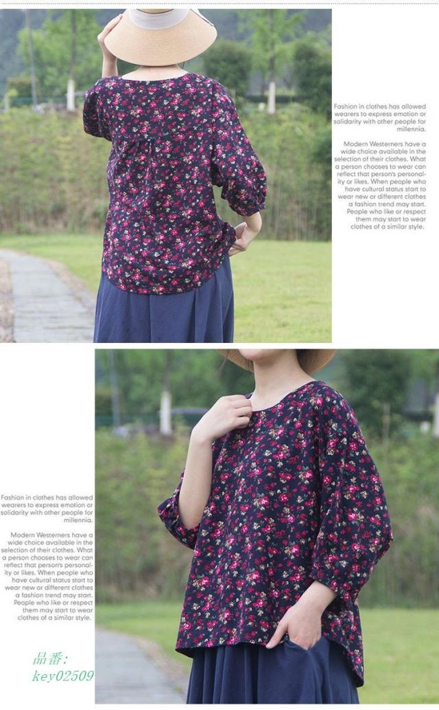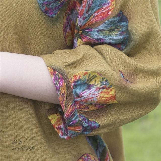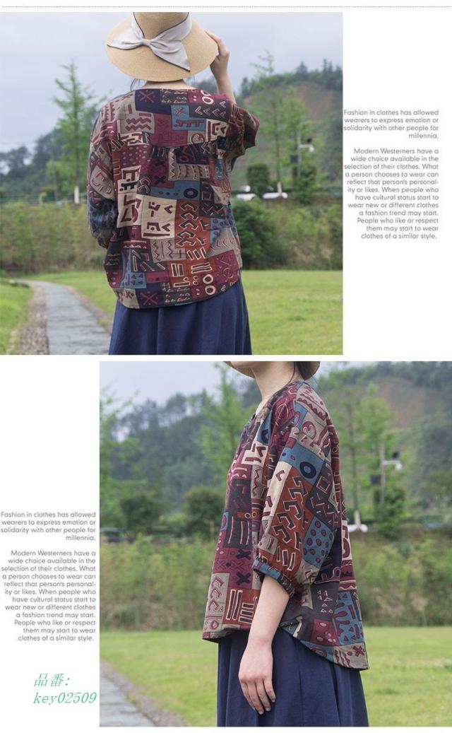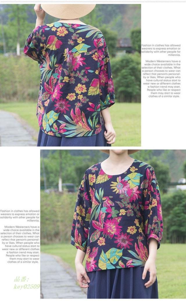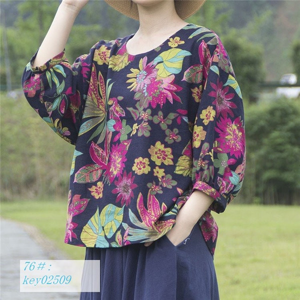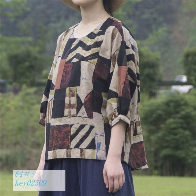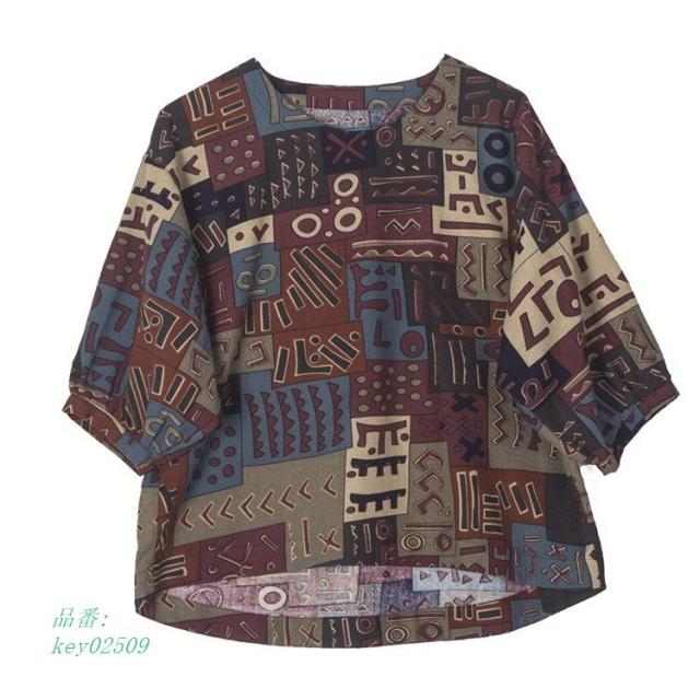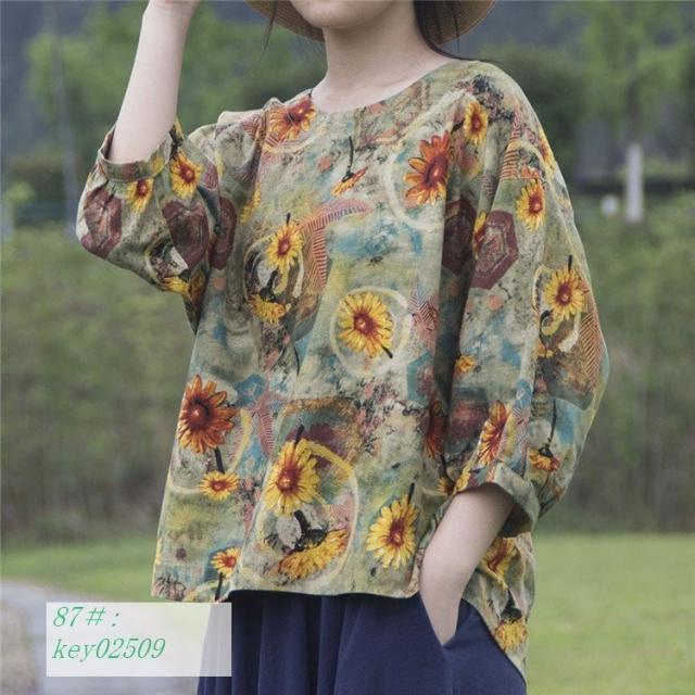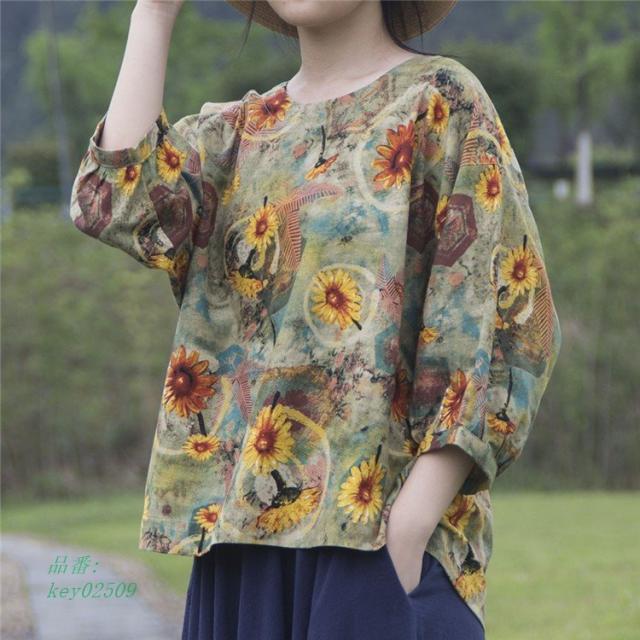 ブラウス 七分袖 レディース トップス 綿麻混風 ゆったり コーデ 花柄 大きいサイズ 通勤 プルオーバー 夏 シャツブラウス 秋 30代 40代 体型カバー tシャツ