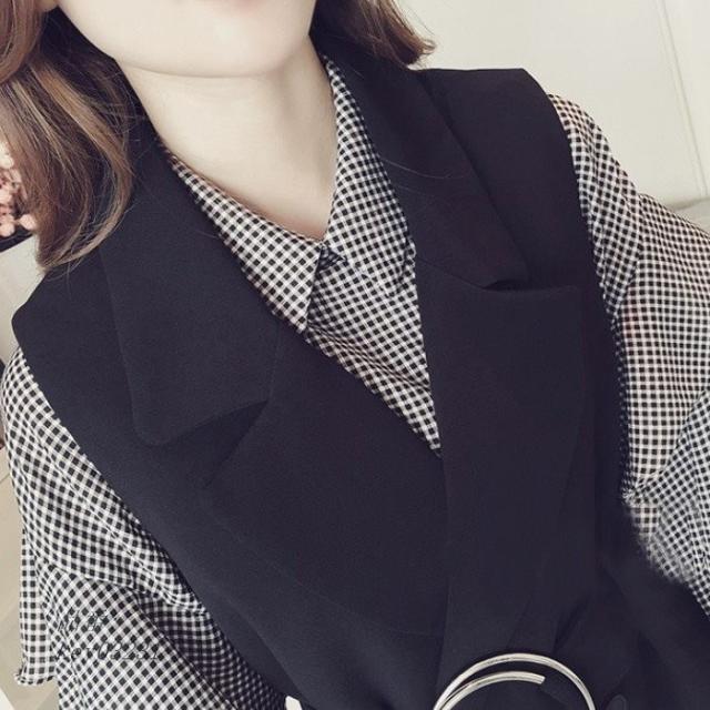 ブラウス レディース おしゃれ OL 大人可愛い 大きいサイズ 2点セット 40代 ロング丈 30代 トップス シャツ テーラードベスト 着やせ ノースリーブベスト 通勤