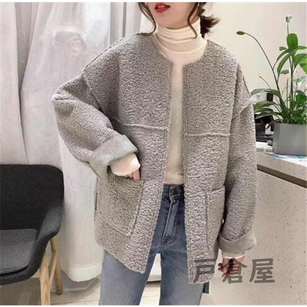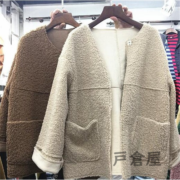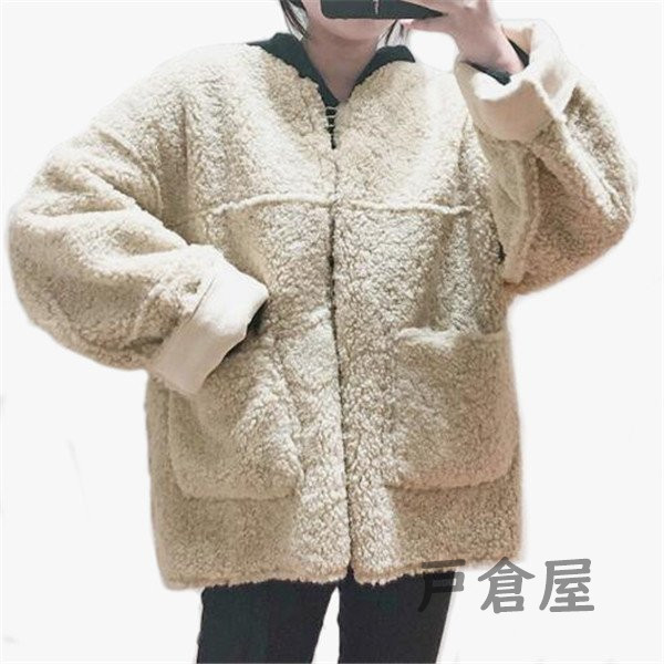ノーカラージャケット レディース ボアジャケット ショート丈 ゆったり ドロップショルダー アウター ボアコート 毛皮コート風 レディース 秋冬 暖かい
