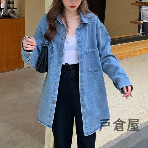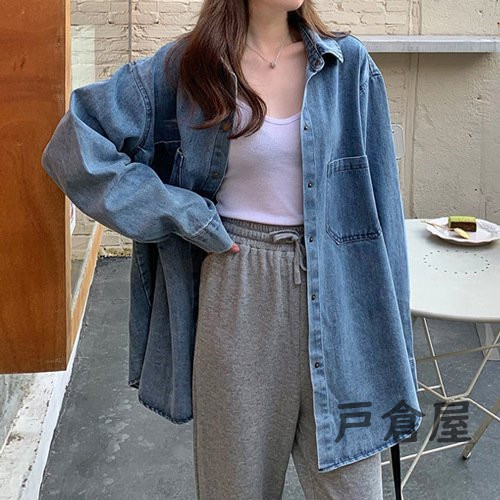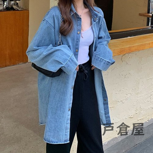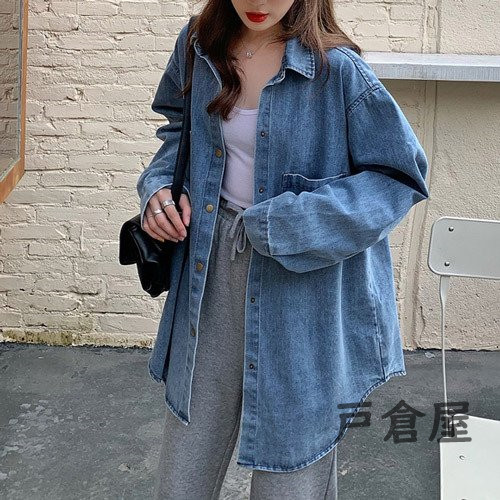 オーバーサイズ 薄手 デニム ジャケット シャツ レディース シンプル きれいめ 可愛い カジュアル おしゃれ
