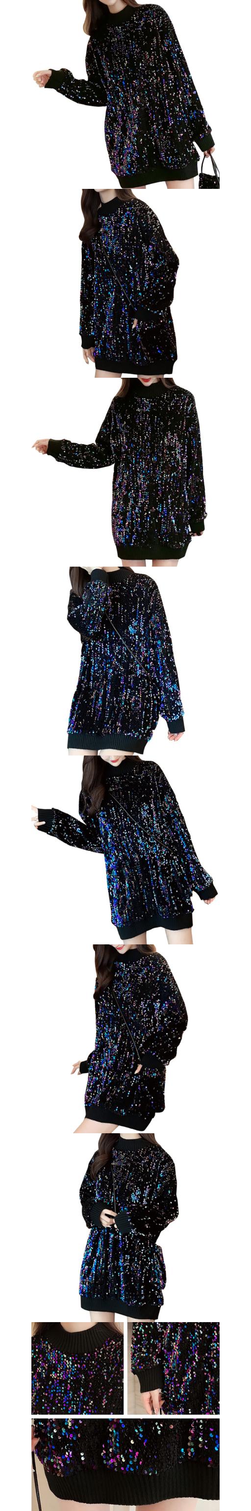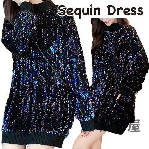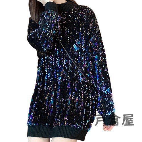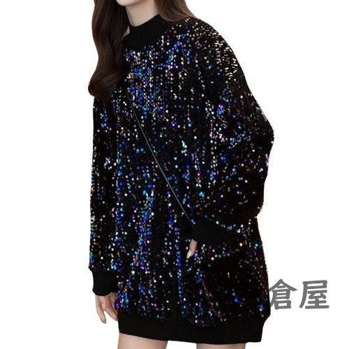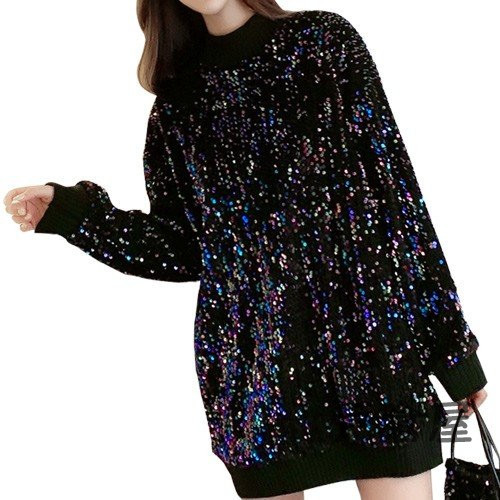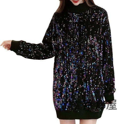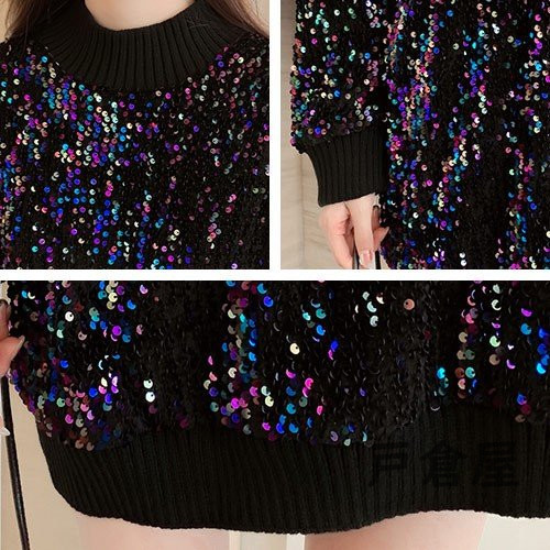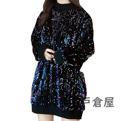 セーター トップス 長袖 チュニック ニット もこもこ レディース ラメ スパンコール きれいめ 男ウケ ブラック
