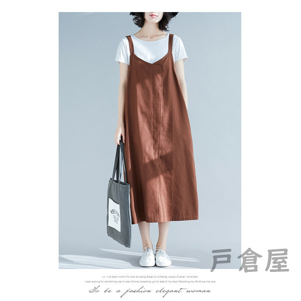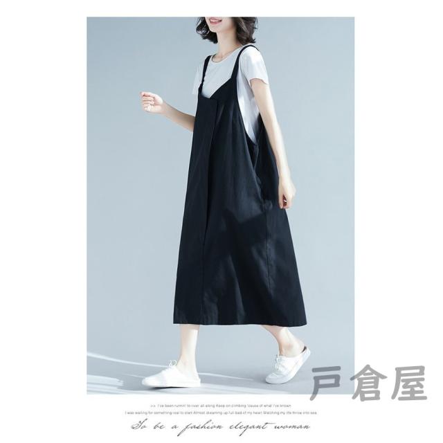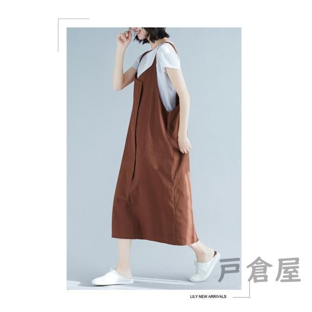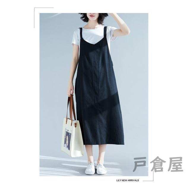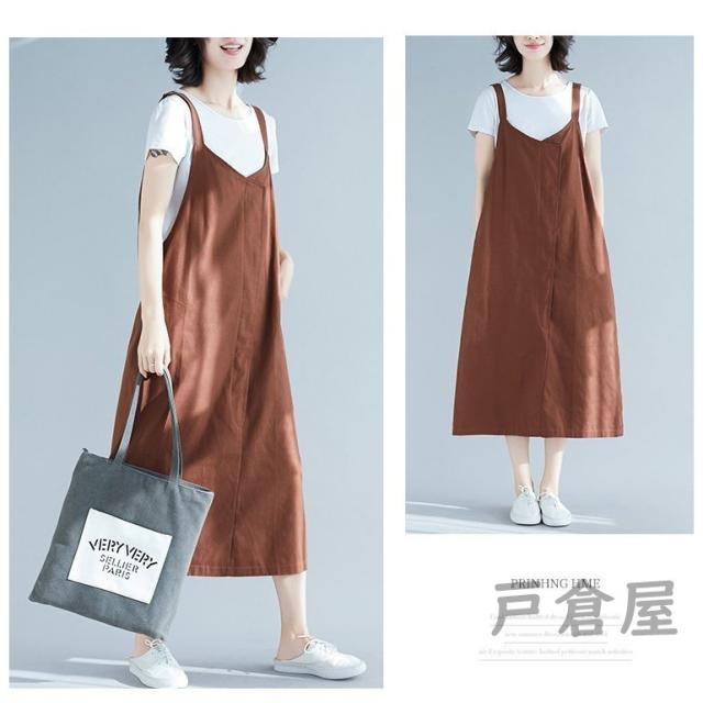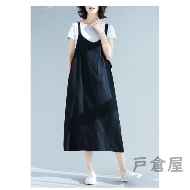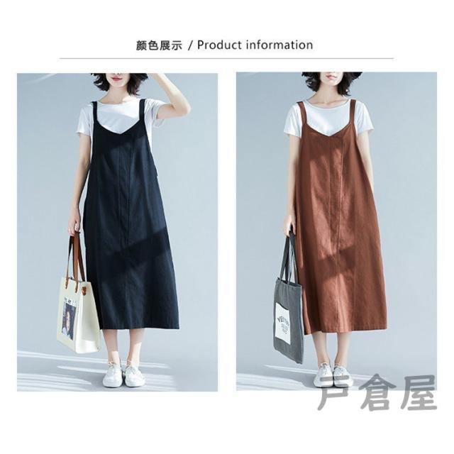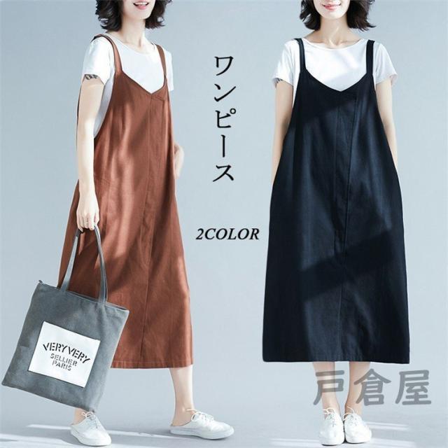 ワンピ ワンピース 膝丈ワンピース ロングワンピ レディース 膝丈 無地 ジャンパースカート uネック 丸首 半袖 Aライン フレア フリル ゆったり きれいめ 綿
