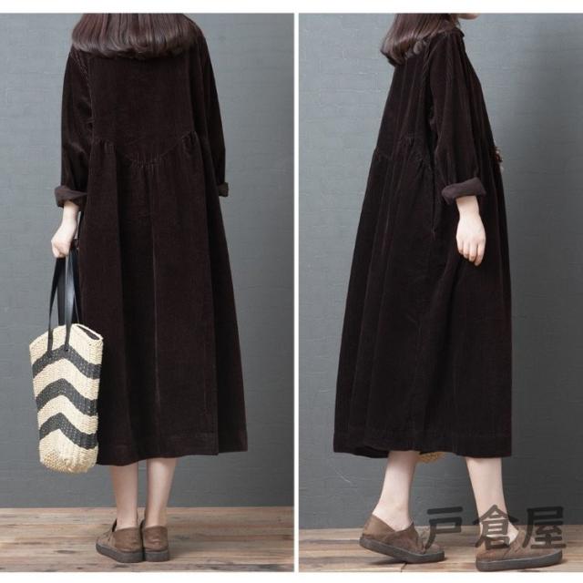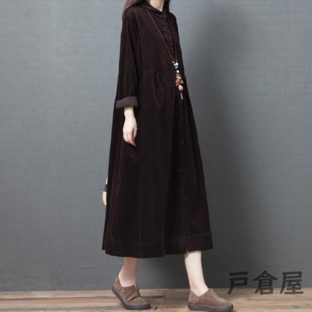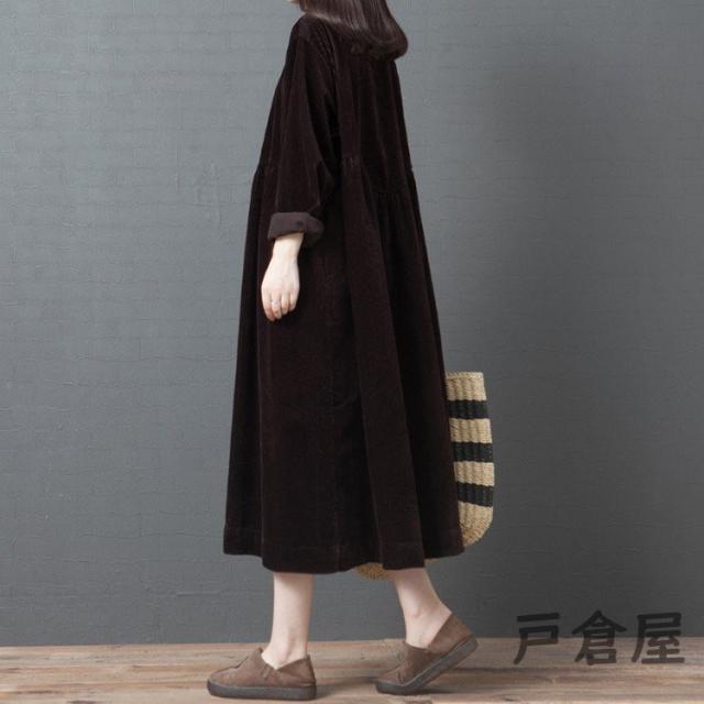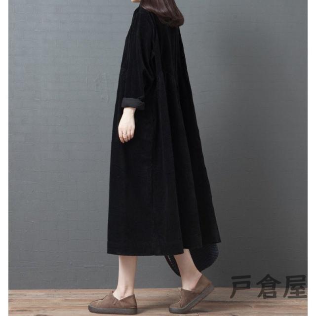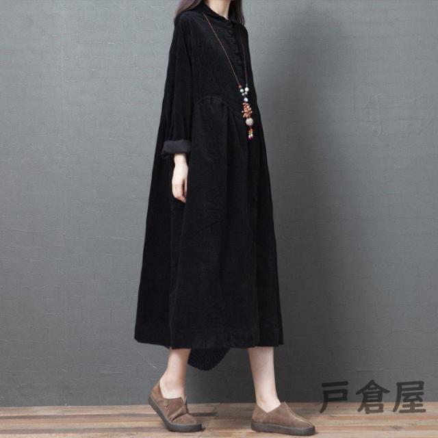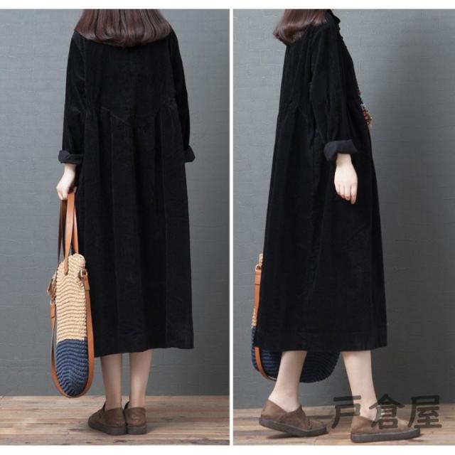 ワンピース レディース 秋冬 40代 きれいめ コーデュロイ 無地 襟付き 長袖 ロング丈 Aライン フレア