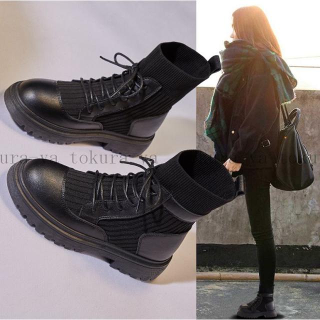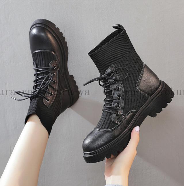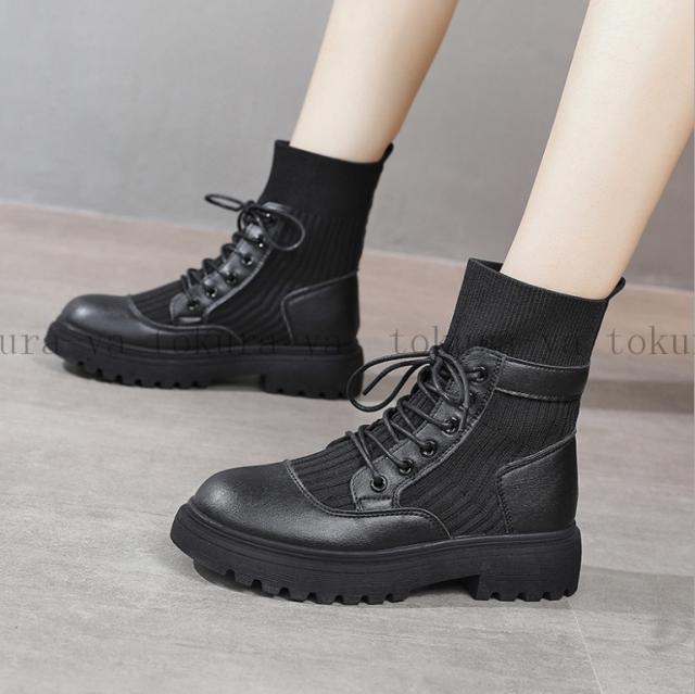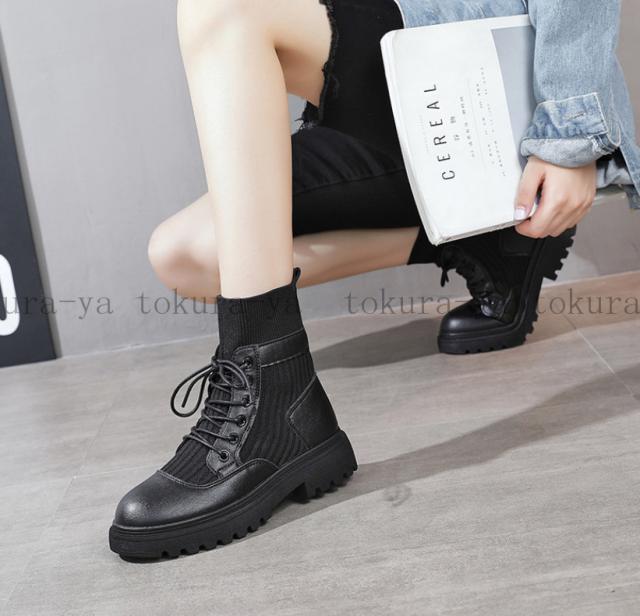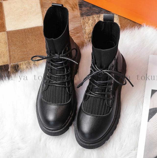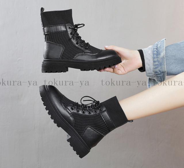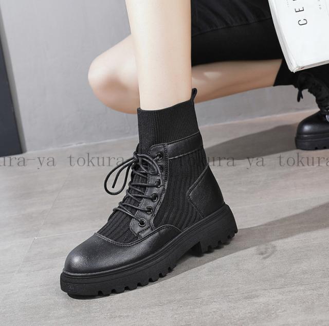 ショートブーツ レディース 黒 レースアップ シューズ 厚底 靴 ショート ローヒール 裏起毛 スエード 歩きやすい 疲れない 2020秋冬新作