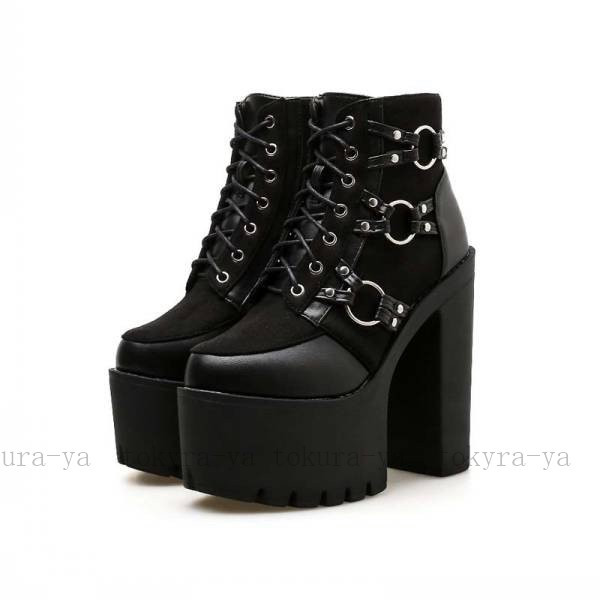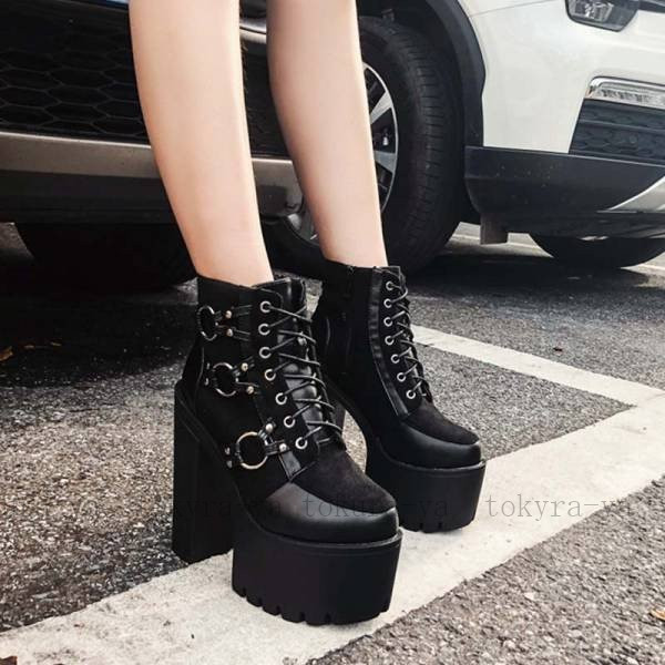 新作上品質 レディースイギリス風 美脚着痩せ 厚底大人気 ストラップ 舞台宴会ショートブーツ 履きやすい厚底ブーツ