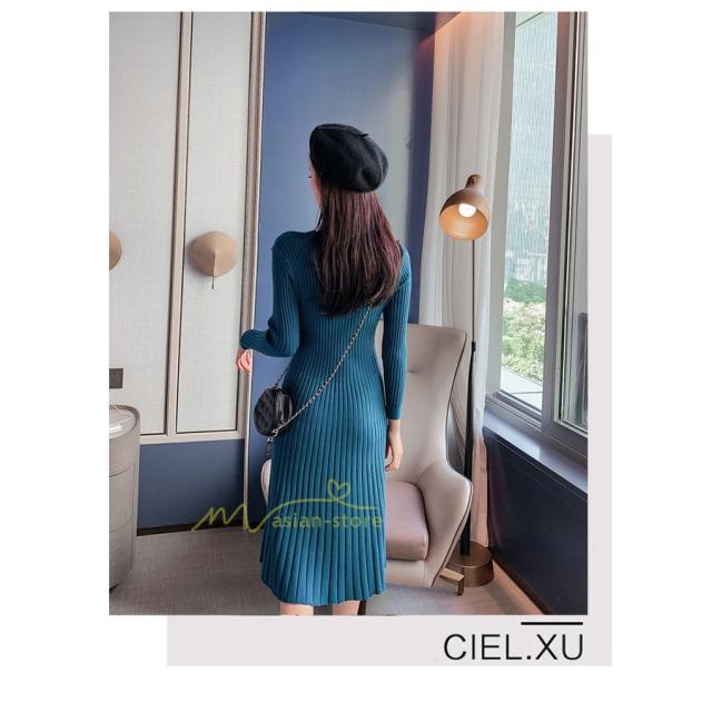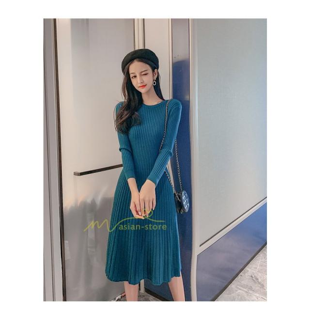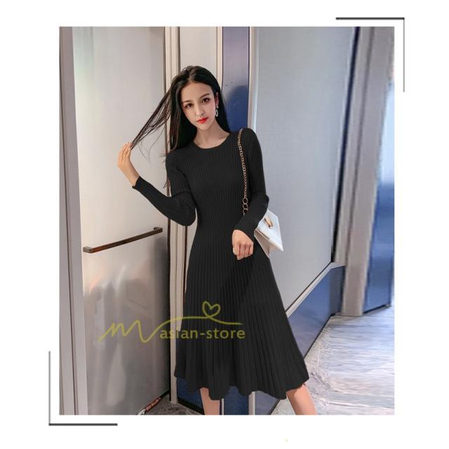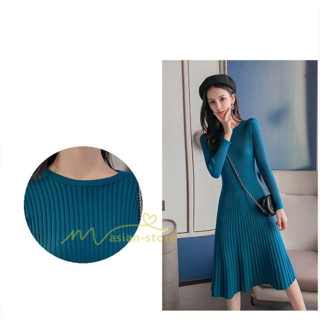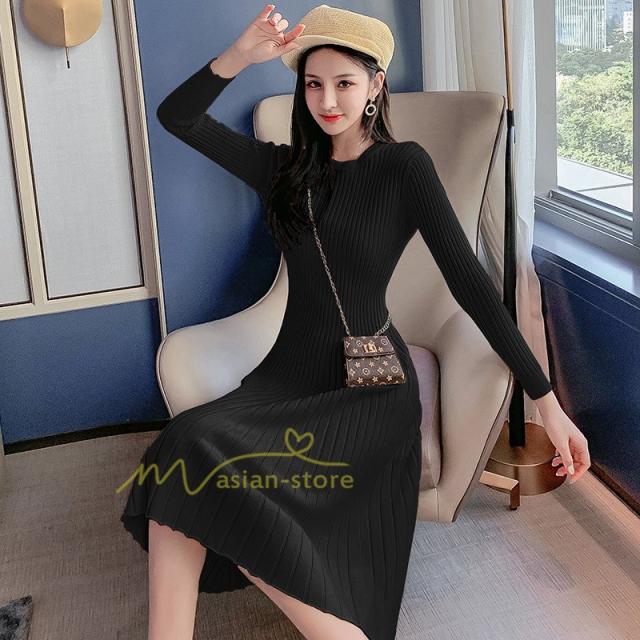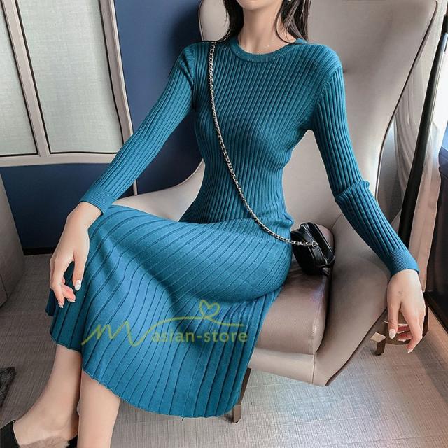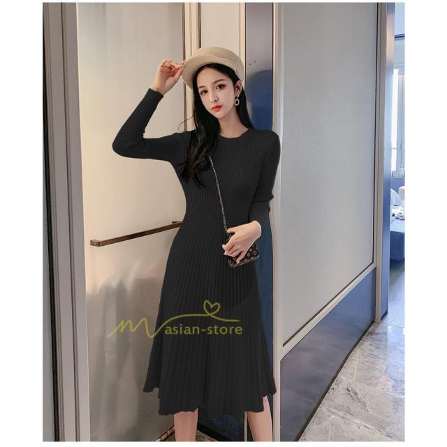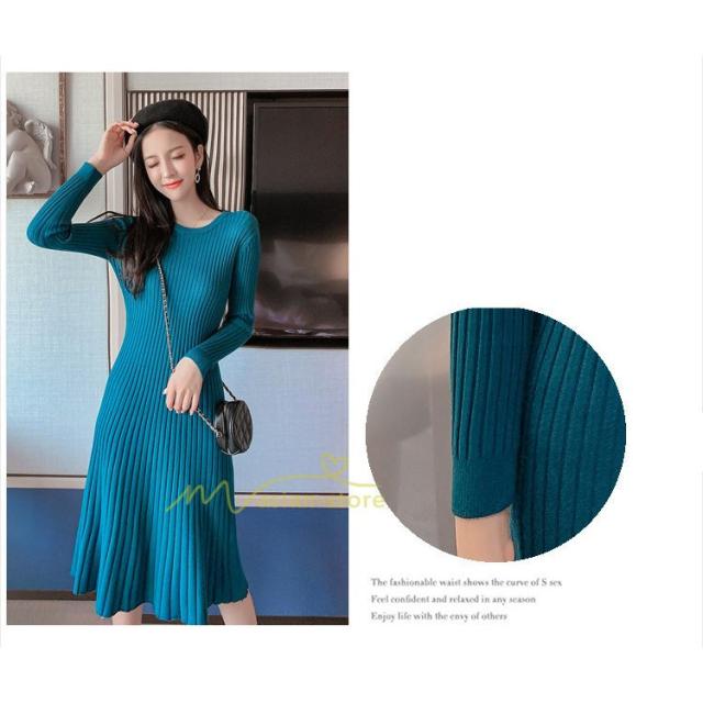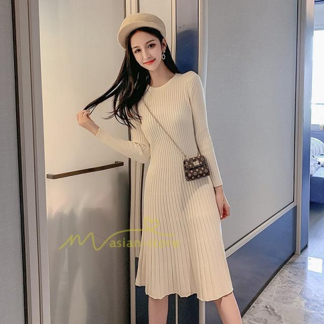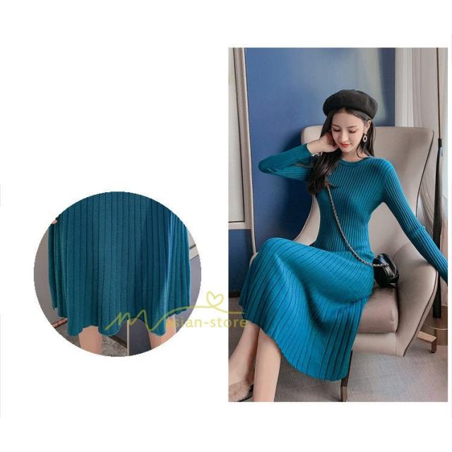 ニットワンピース レディース 秋 冬 40代 20代 きれいめ 長袖ワンピース 丸襟 無地 結婚式ドレス 上品 ロング 通勤 韓国風 シンプル エレガント 着痩せ 2021作